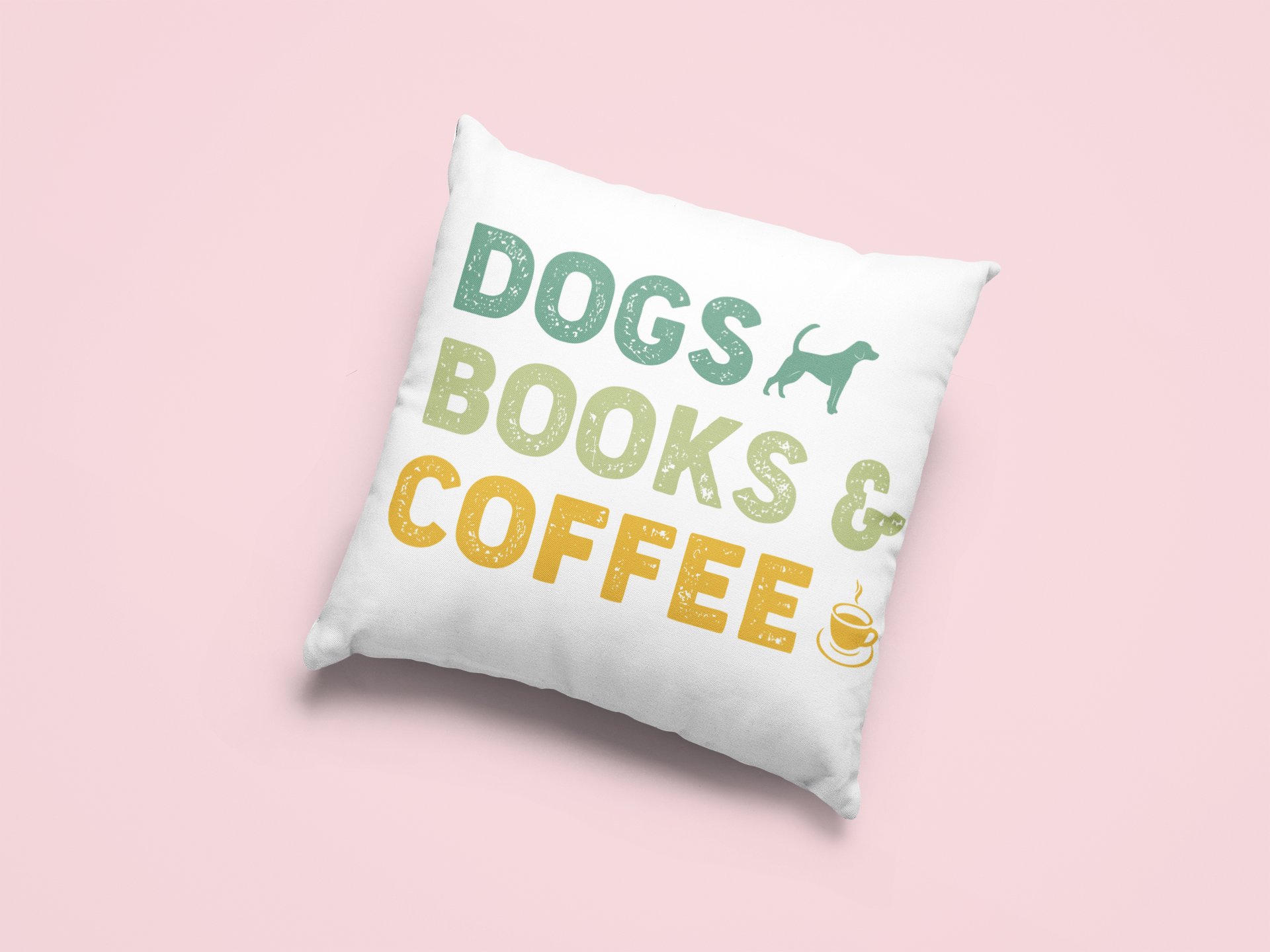 Dogs books coffee -Printed Pillow Covers For Pet Lovers(Pack Of Two)