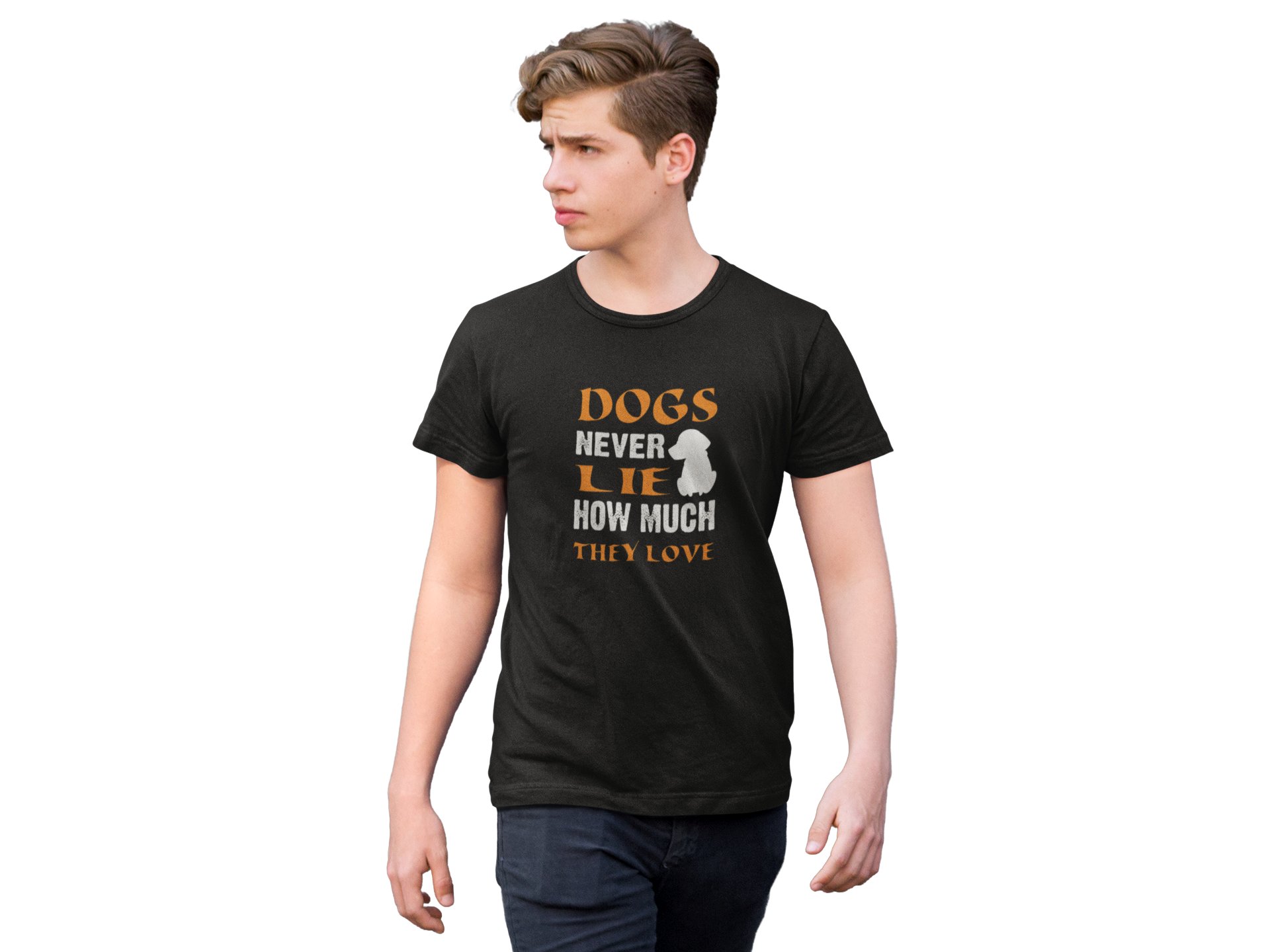 Dogs never lie how much they love - printed stylish Black cotton tshirt- tshirts for men