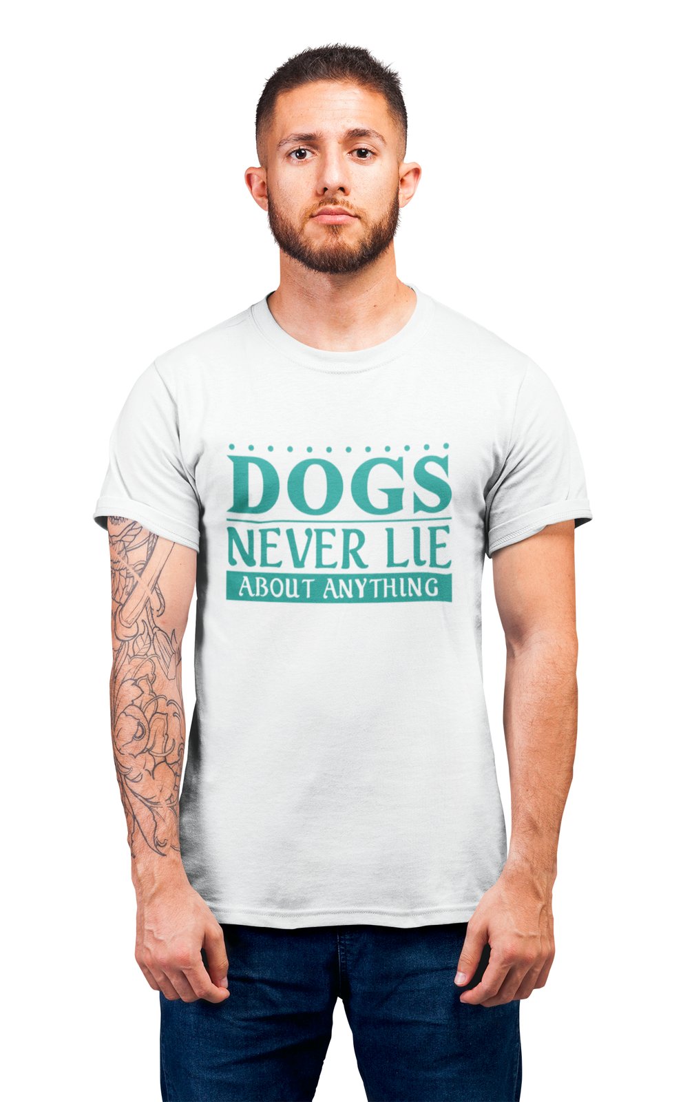 Dogs never lie - printed stylish White cotton tshirt- tshirts for men