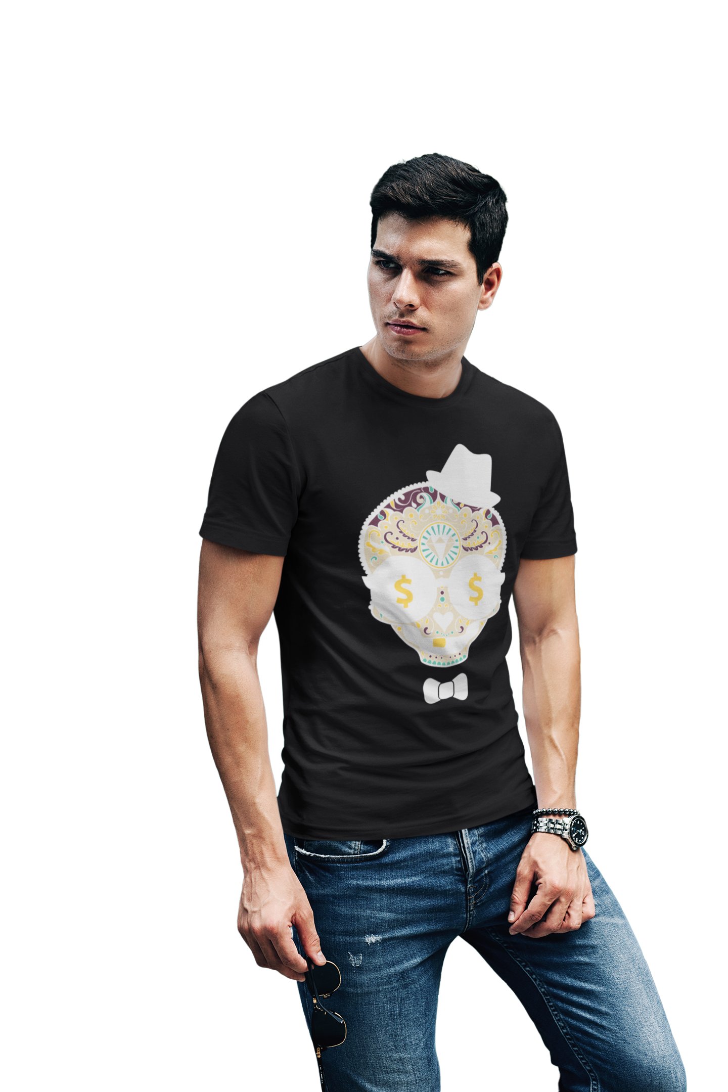 Dollar Art Illustration Graphic tees black- printed T-shirts - Men's stylish clothing - Cool tees for boys