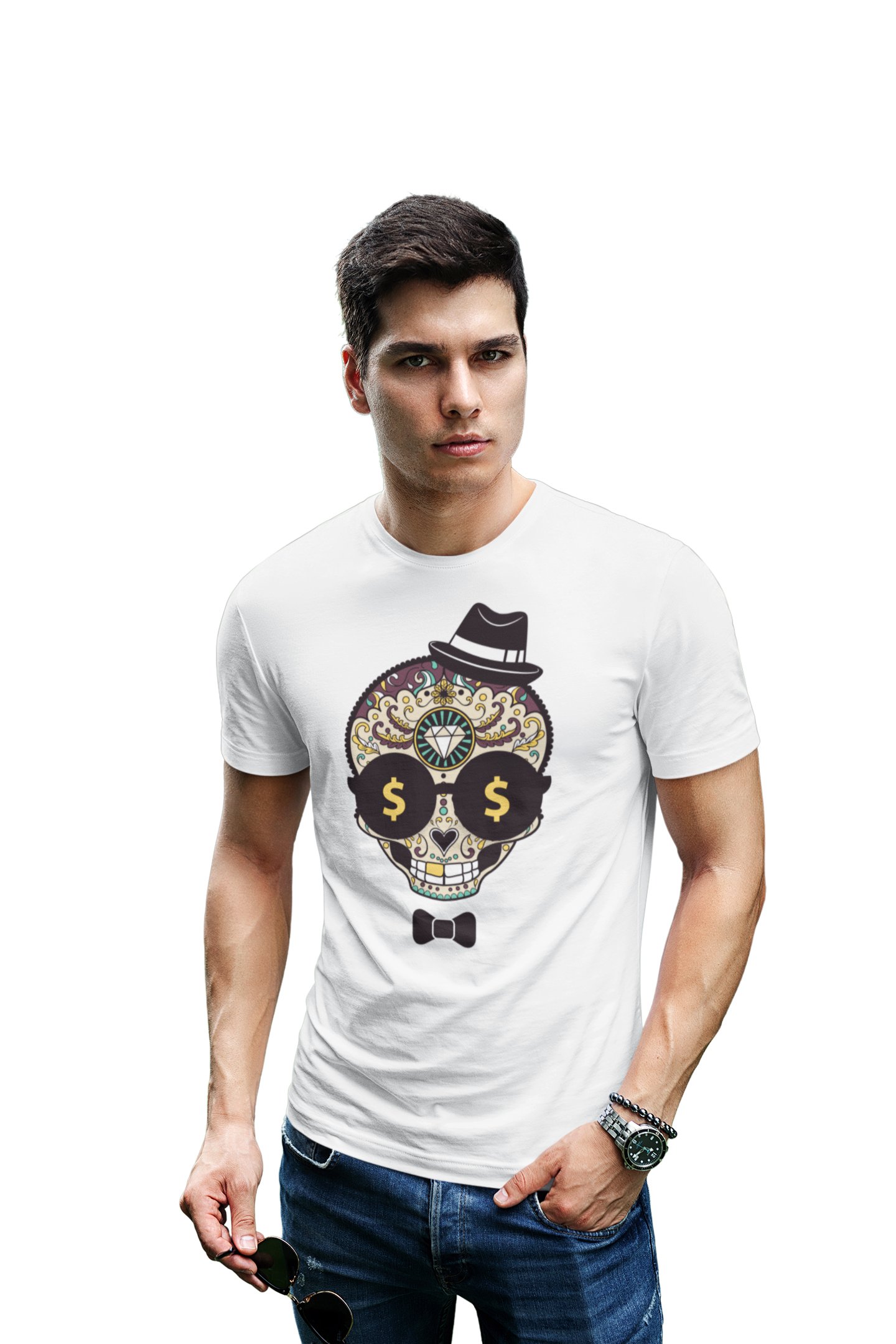 Dollar Art Illustration Graphic tees white - printed T-shirts - Men's stylish clothing - Cool tees for boys