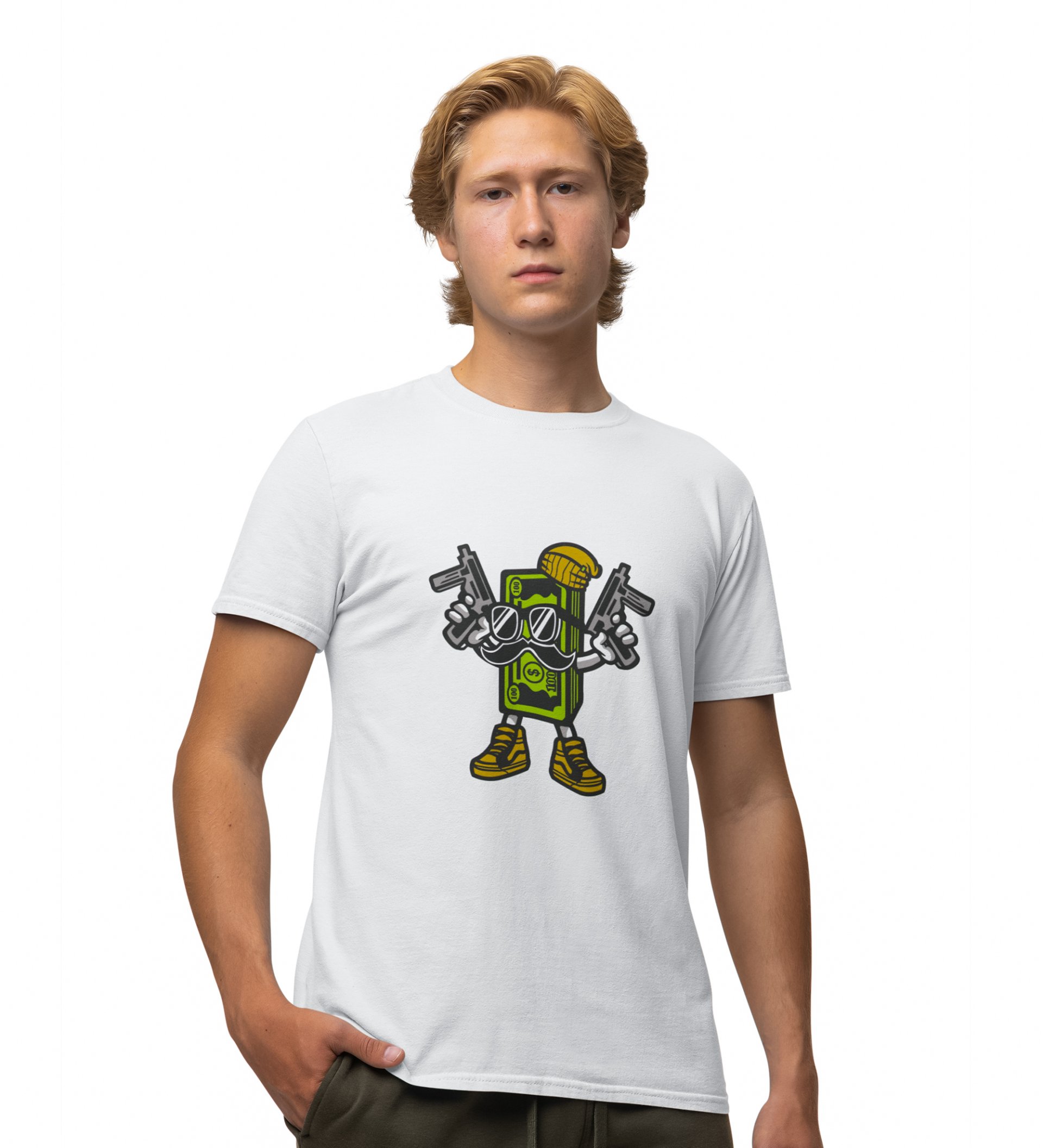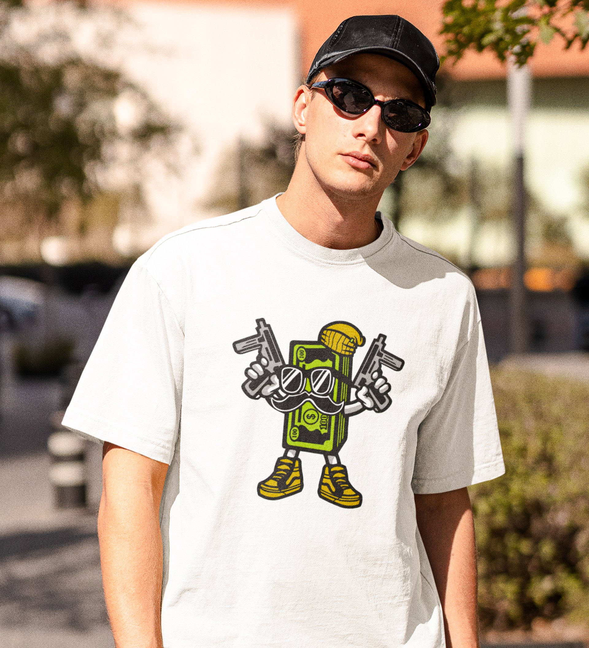 Cash The Real Boss White Round Neck Cotton Half Sleeved Men's T-Shirt with Printed Graphics