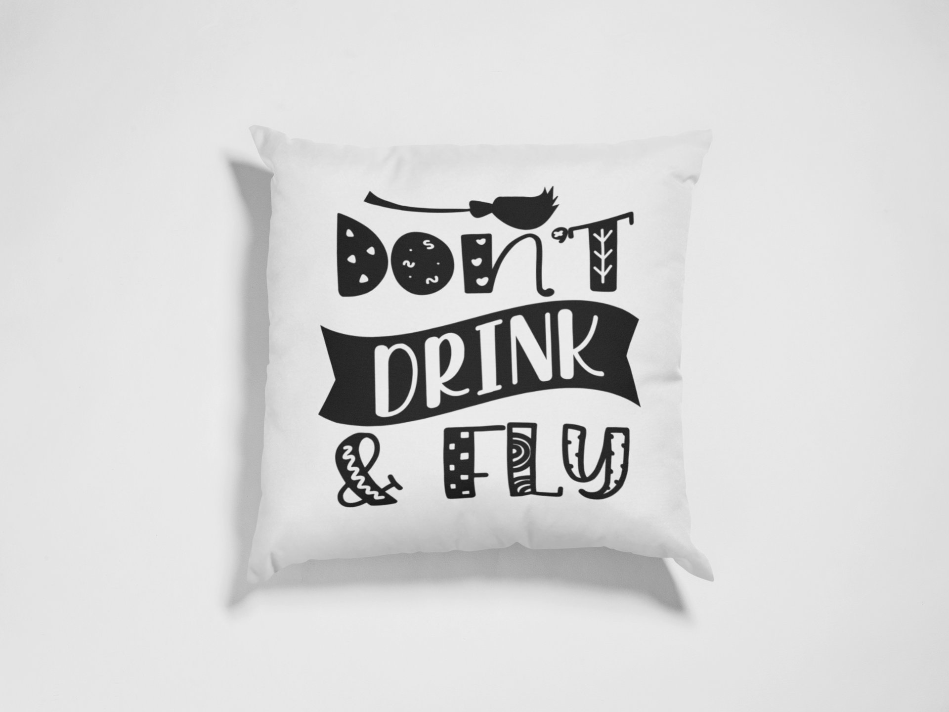 Don't drink & fly, Broom -Halloween Theme Pillow Covers (Pack Of 2)