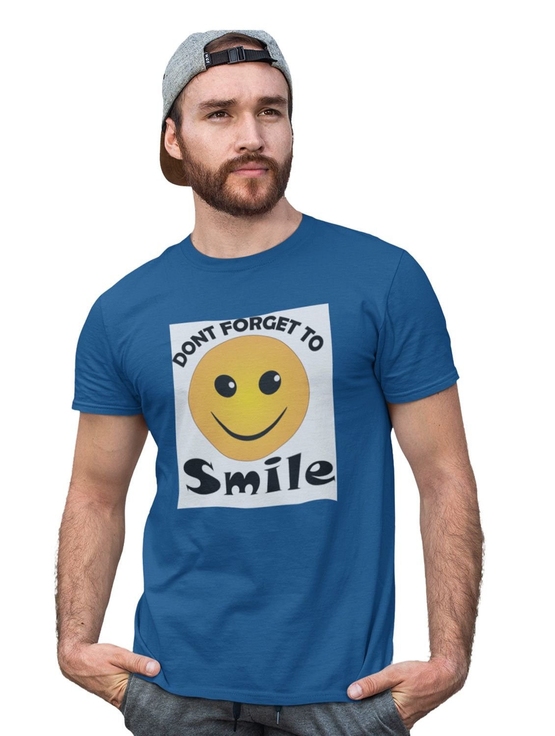 Don't Forget to Smile Emoji T-shirt (Blue) - Clothes for Emoji Lovers - Suitable for Fun Events - Foremost Gifting Material for Your Friends and Close Ones