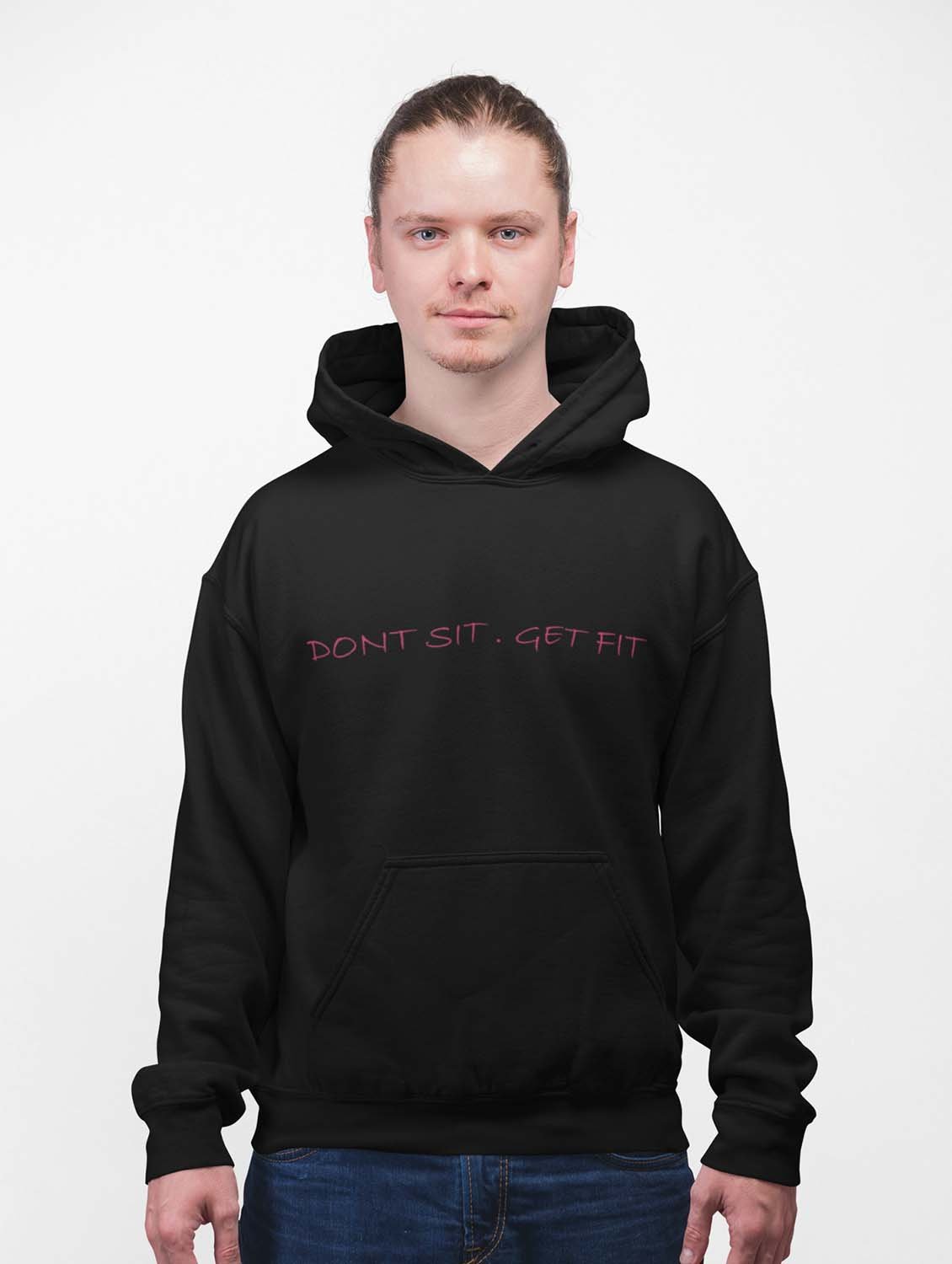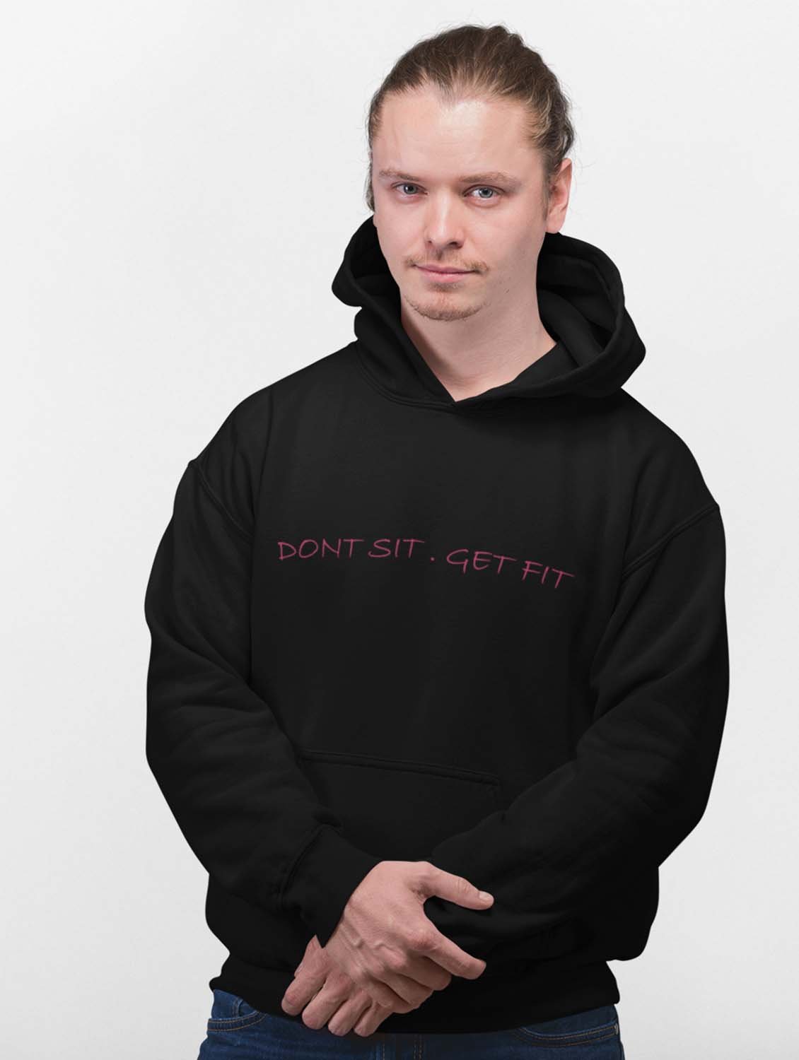Don't Sit, Get Fit, printed artswear black hoodies for winter casual wear specially for Men