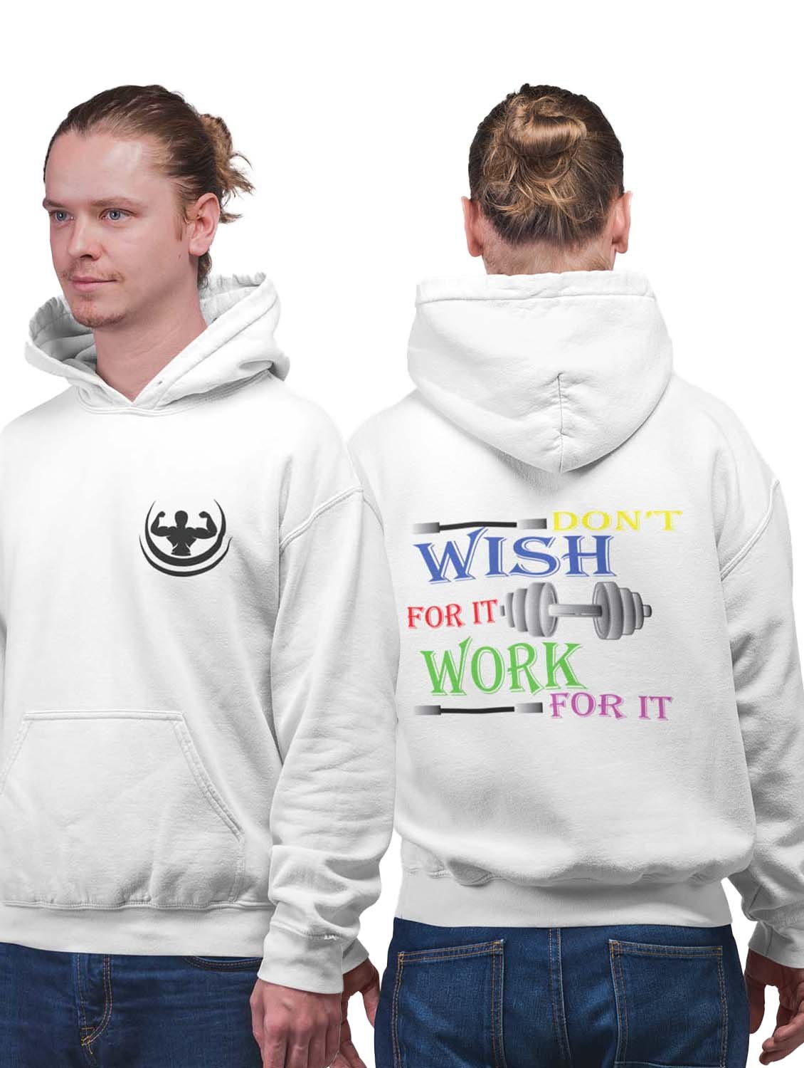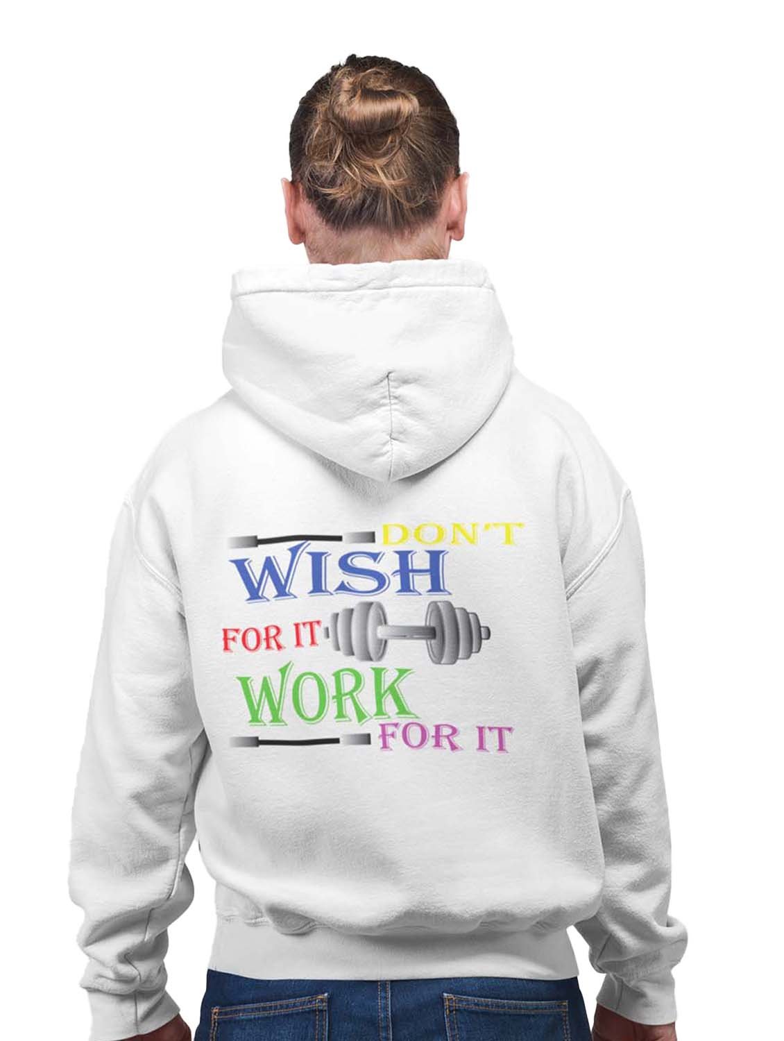 Don't Wish For It, Work For It Text printed artswear white hoodies for winter casual wear specially for Men