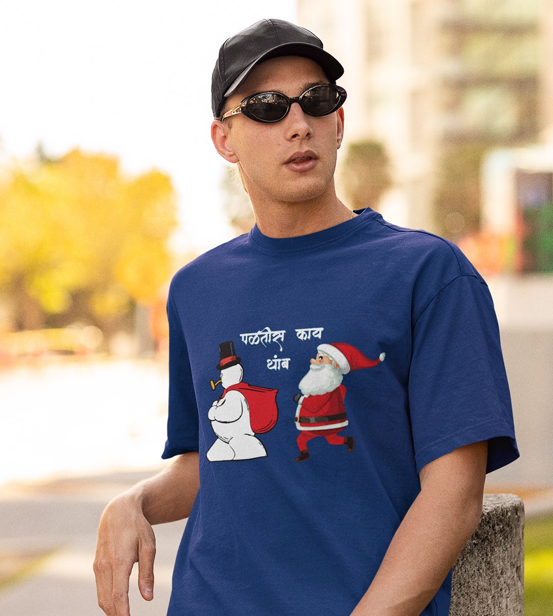 Don't You Run : Tranform Your Fashion with(Blue) T-shirt Marathi Theme - BPA-Free, Perfect for Holiday Workout