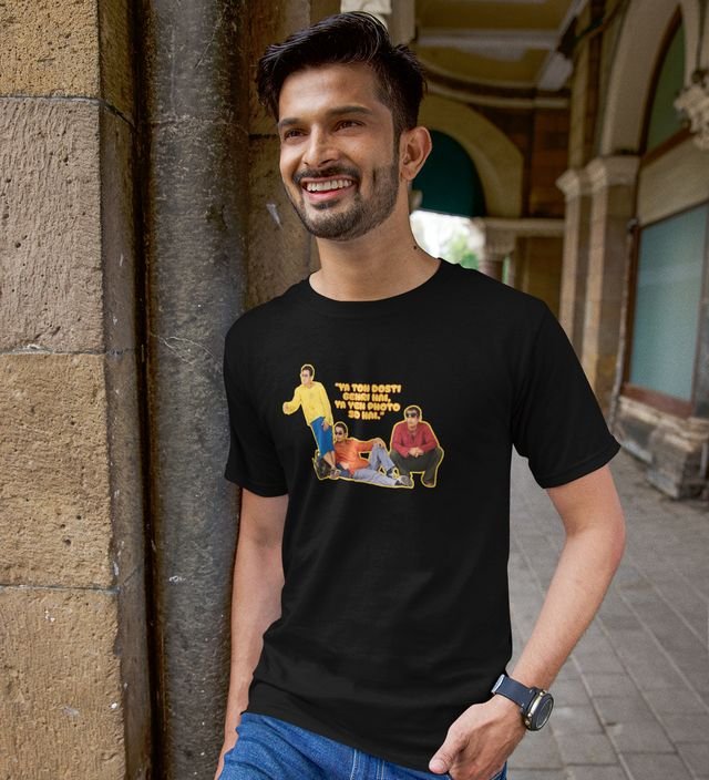 Dosti Dialogues Black Round Neck Cotton Half Sleeved Men T Shirt with Printed Graphics