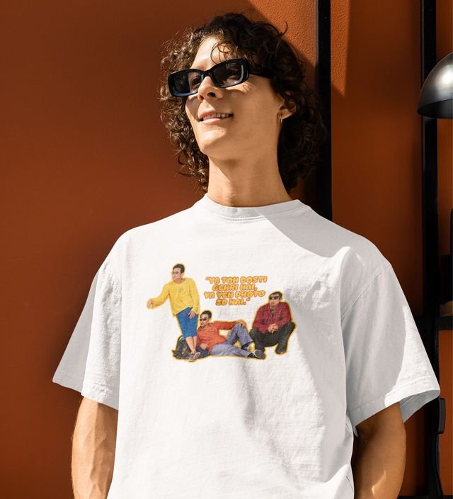 Dosti Dialogues White Round Neck Cotton Half Sleeved Men T Shirt with Printed Graphics