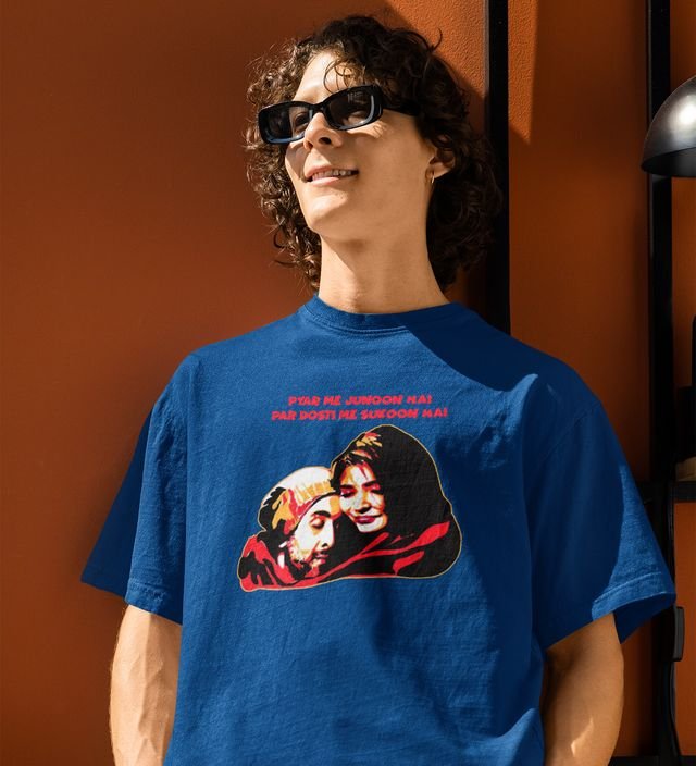 Dosti Is Peace Blue Round Neck Cotton Half Sleeved Men T Shirt with Printed Graphics