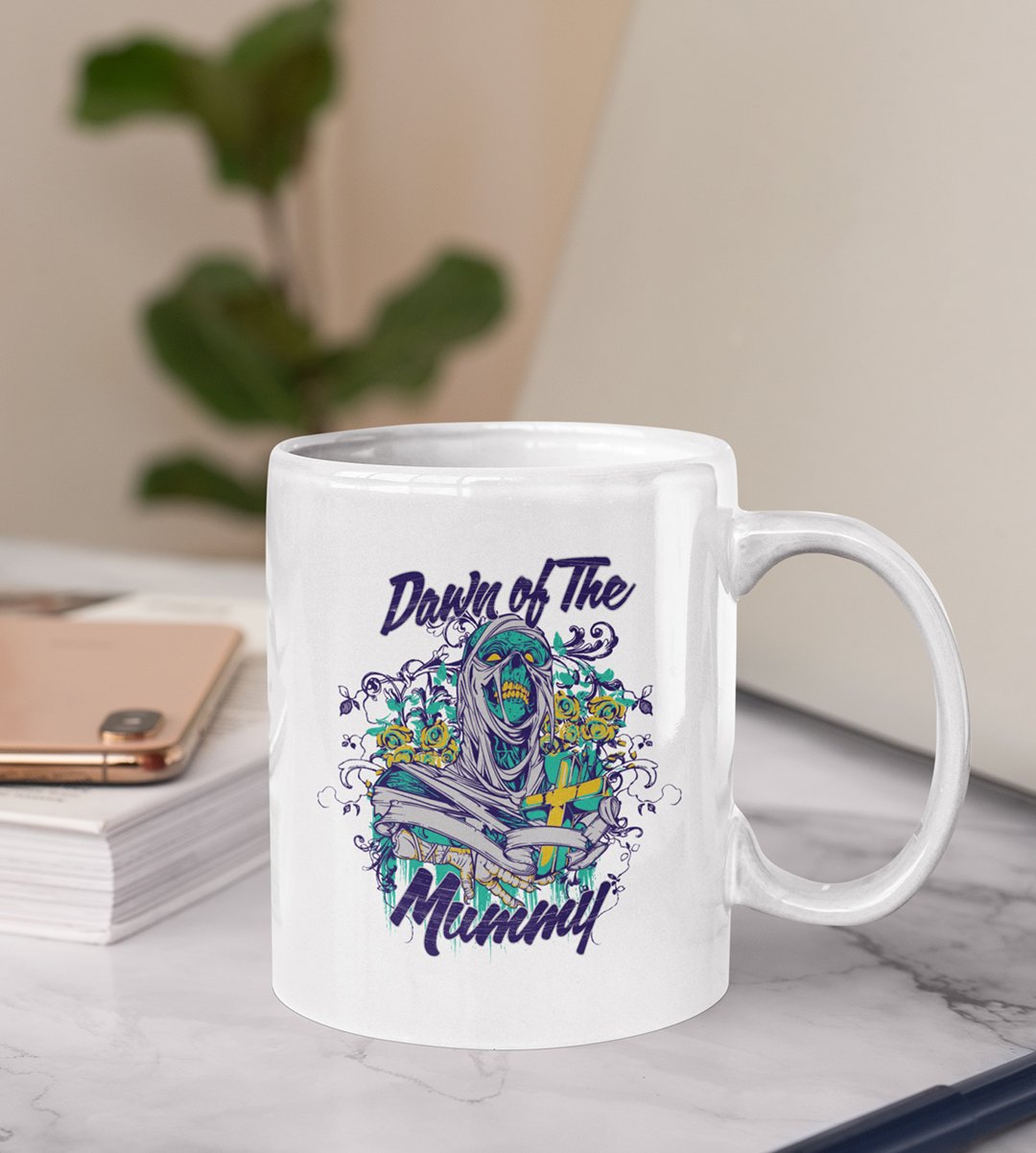 Down of the mummy - animation themed printed ceramic white coffee and tea mugs/ cups for animation lovers