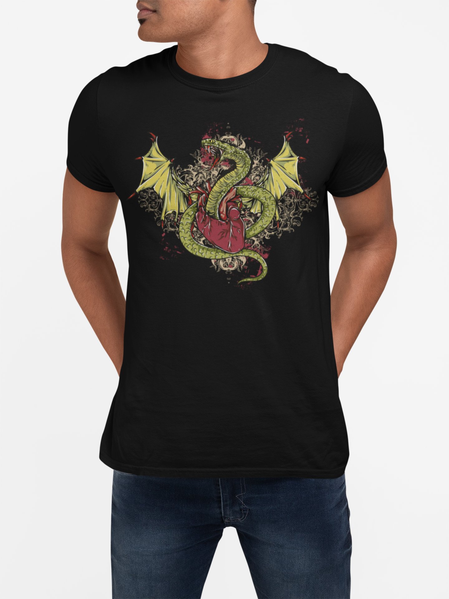 Dragon -colourfull - Black - printed T-shirts - Men's stylish clothing - Cool tees for boys