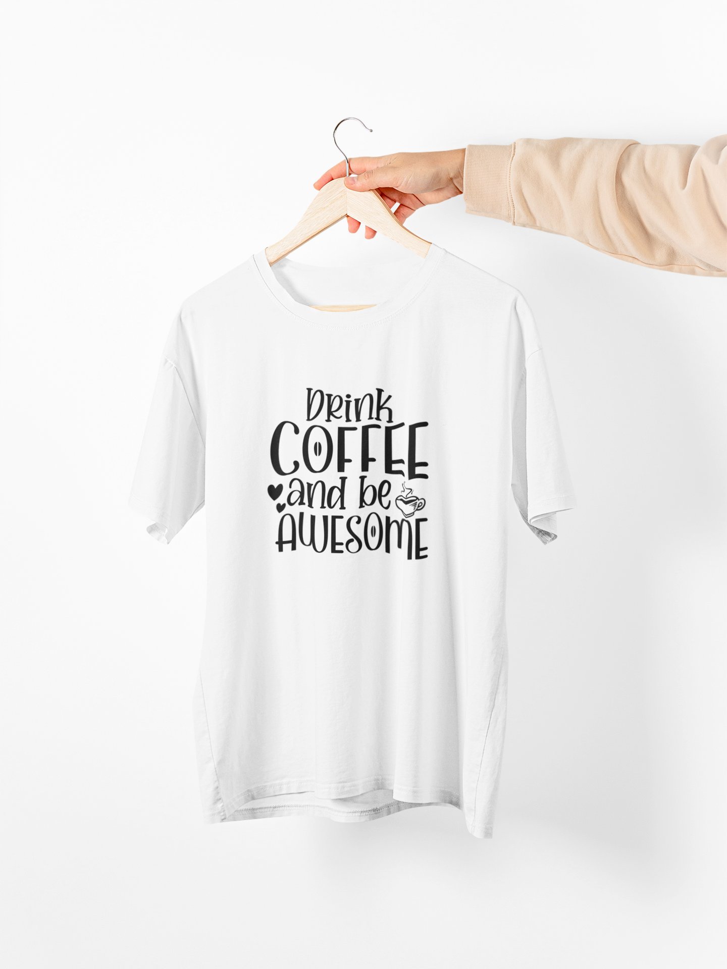 Drink Coffee and be awesome - White - printed t shirt - comfortable round neck cotton.
