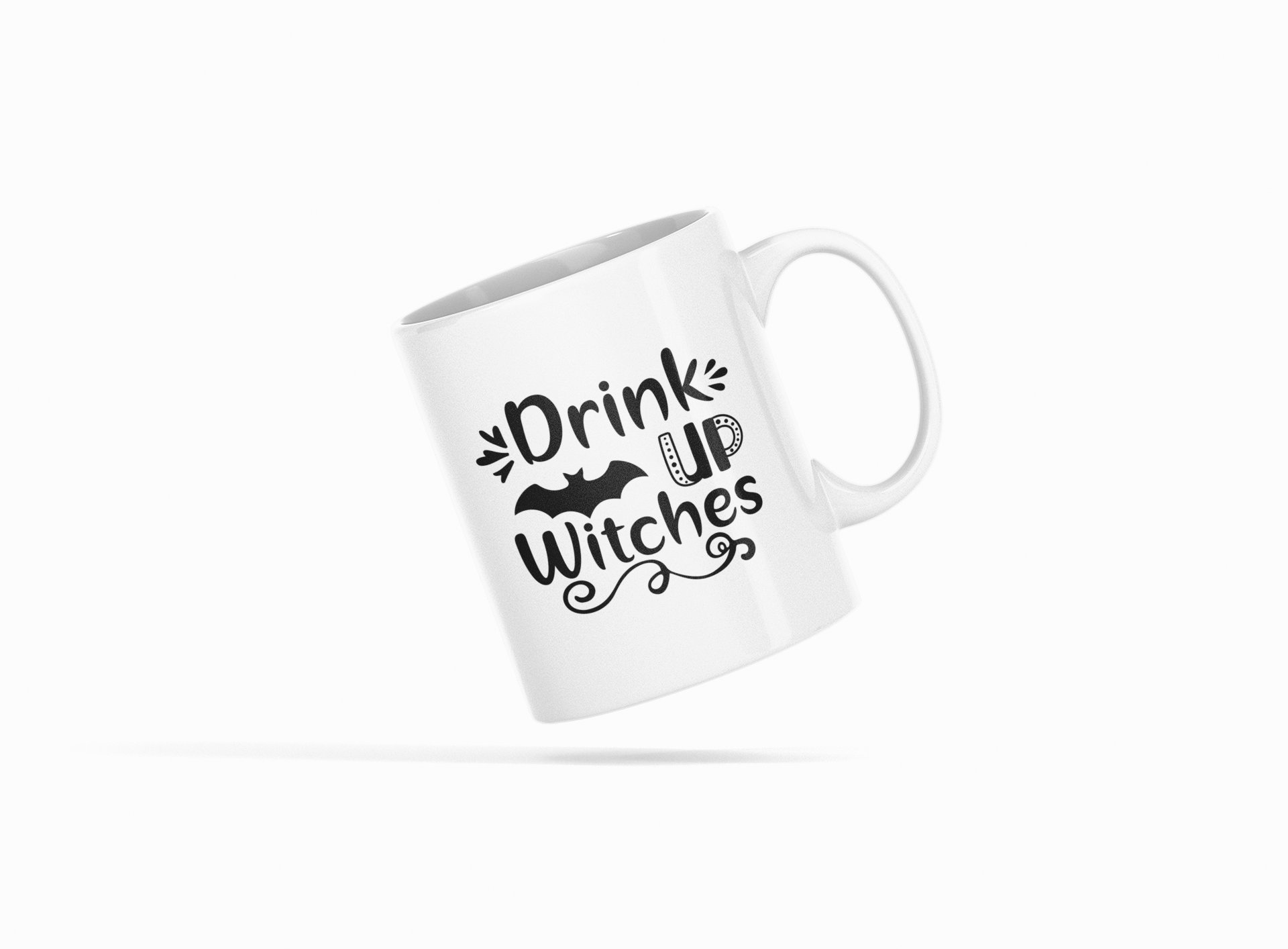 Drink up witches, flying bat -Halloween Themed Printed Coffee Mugs