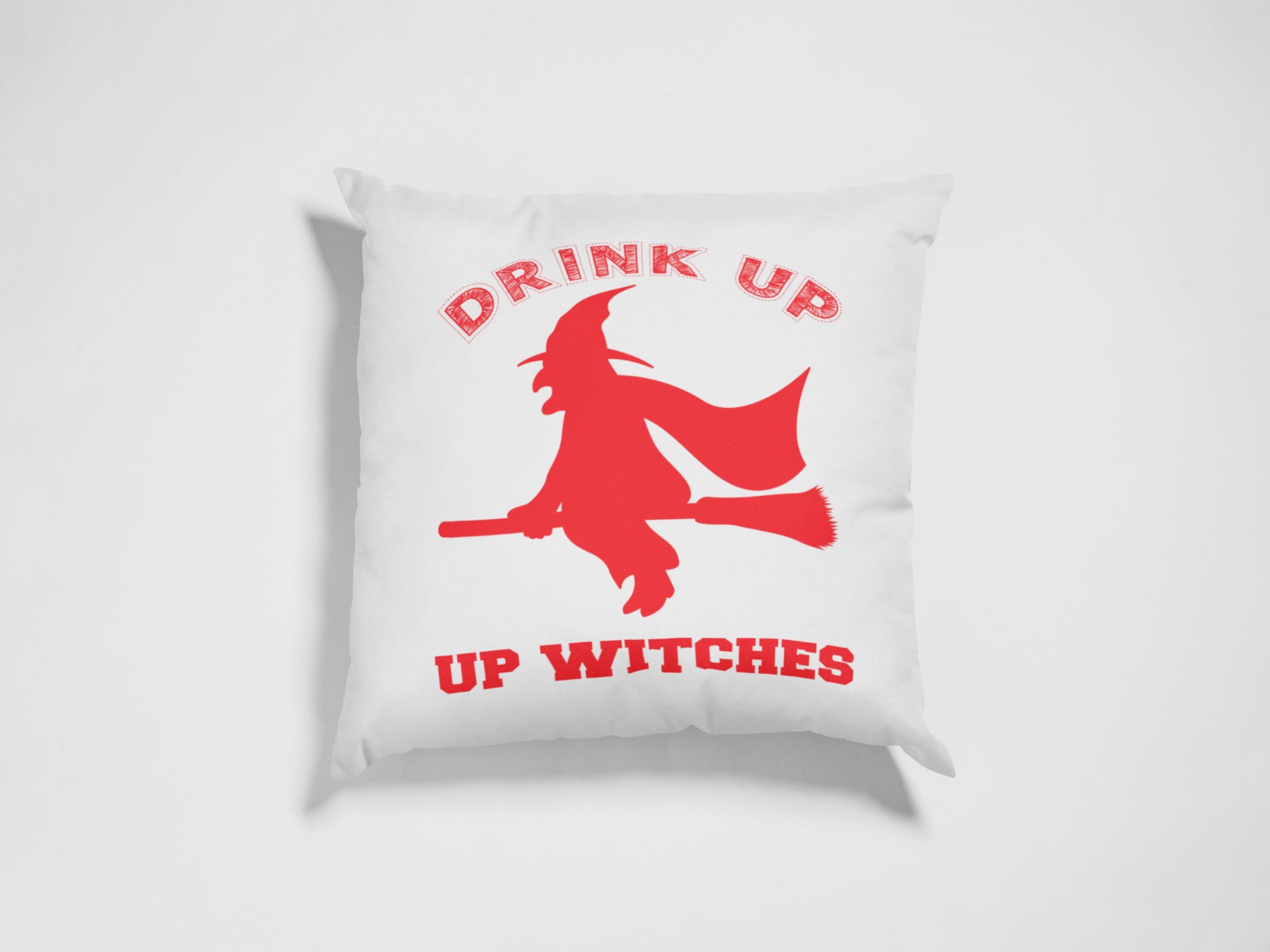 Drink up witches, Flying witch -Halloween Theme Pillow Covers (Pack Of 2)