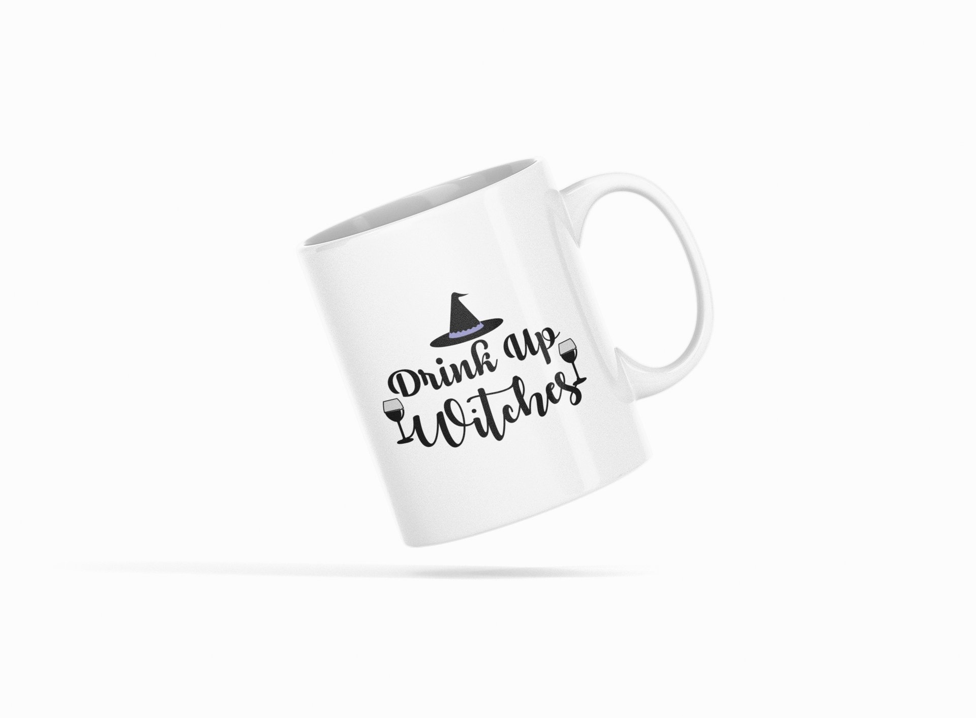 Drink up witches, wine glasses -Halloween Themed Printed Coffee Mugs