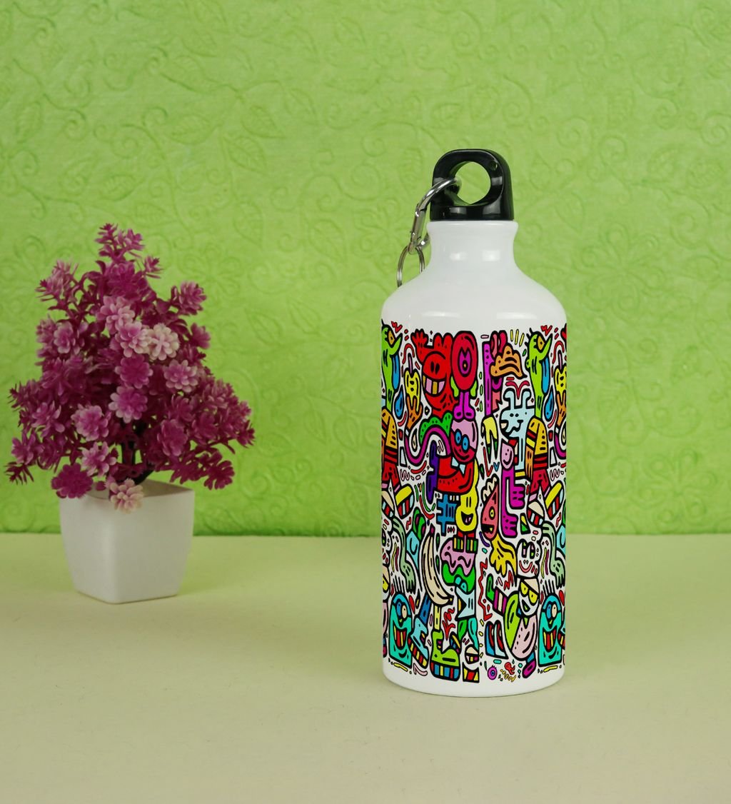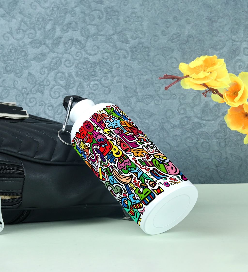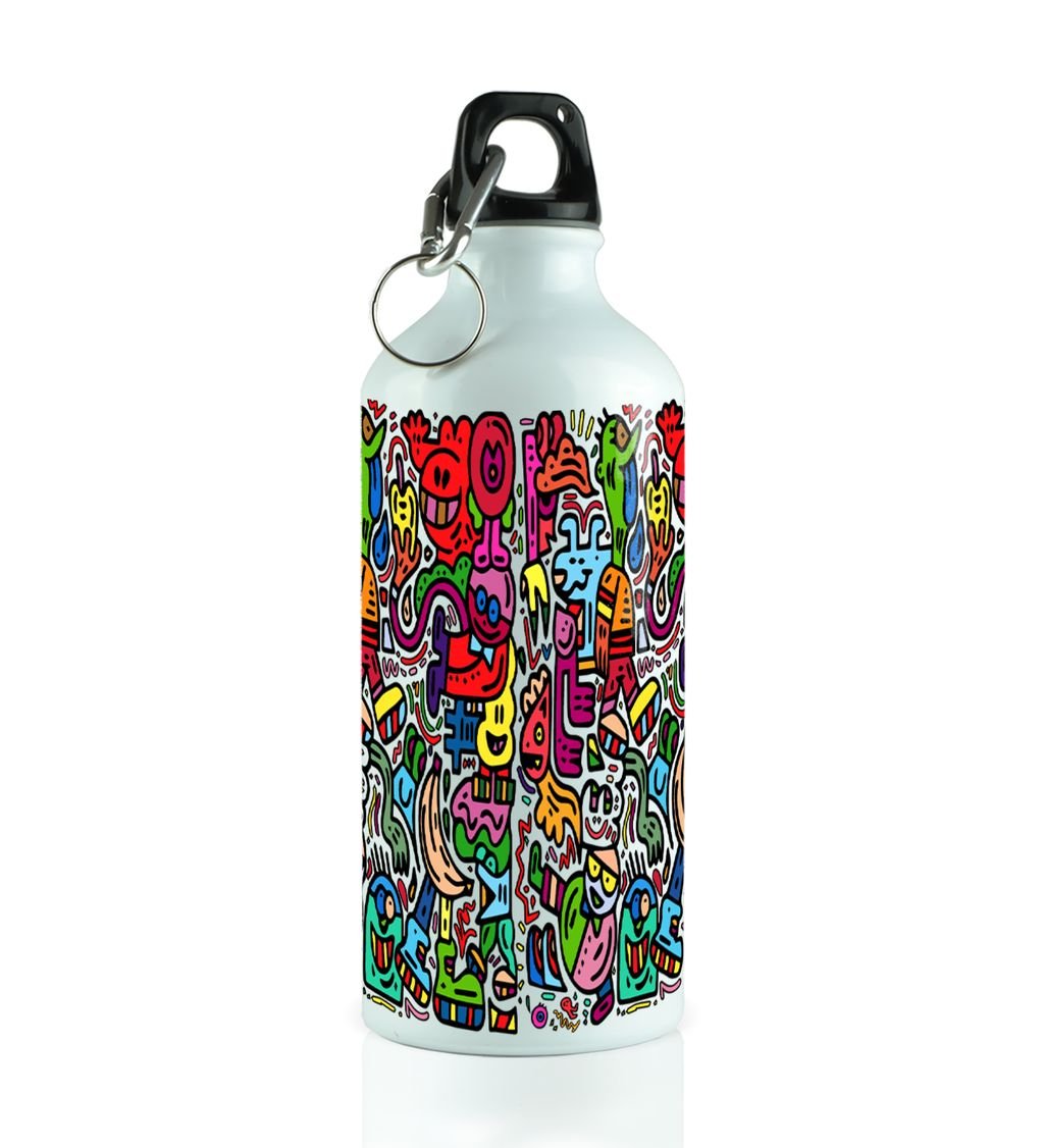 Drink Up with Colorful Doodle Illustrations on Aluminium Water Bottle 600ml