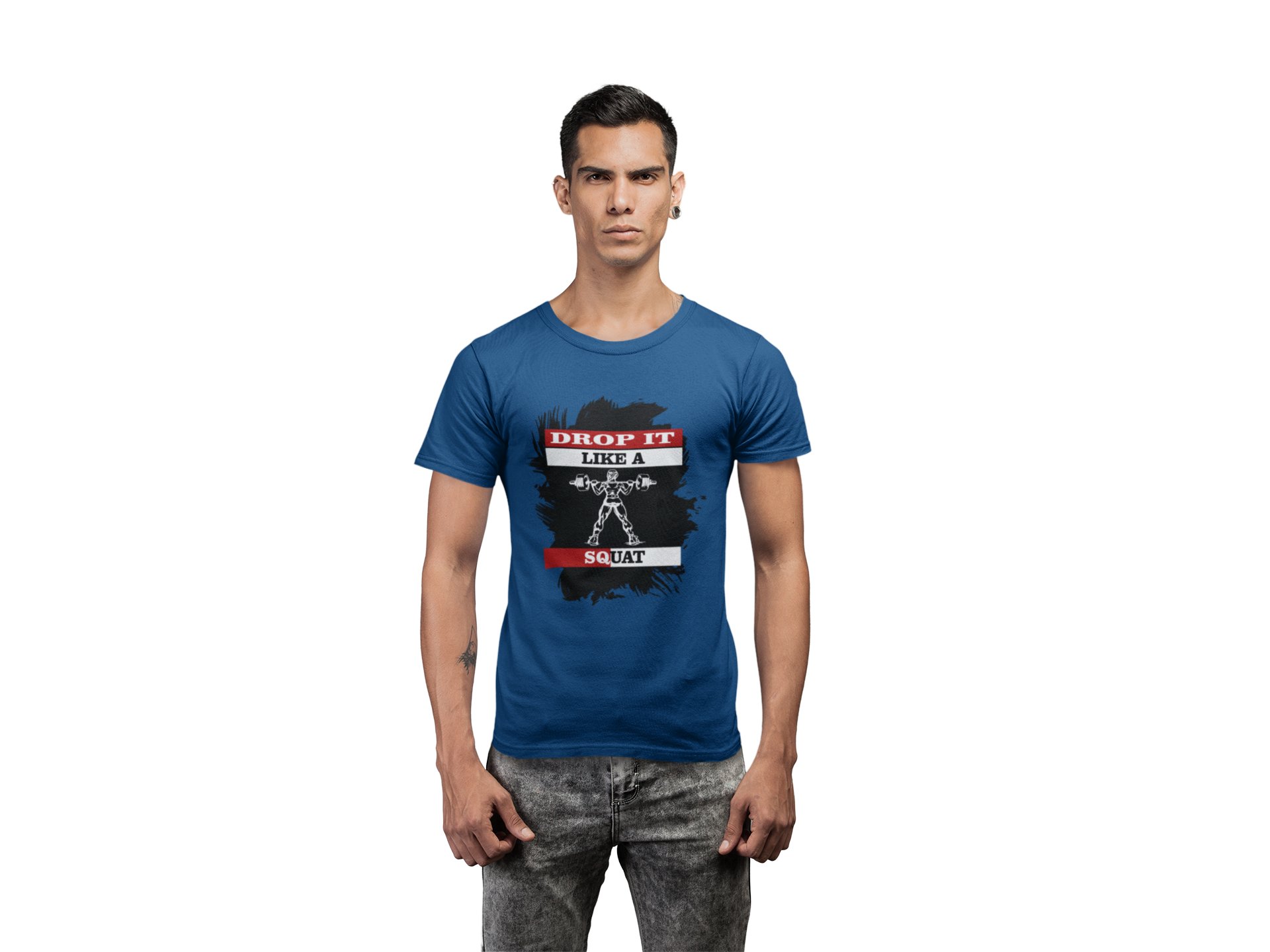 Drop It Like A Squat, Round Neck Gym Tshirt (Blue Tshirt) - Clothes for Gym Lovers - Suitable for Gym Going Person - Foremost Gifting Material for Your Friends and Close Ones