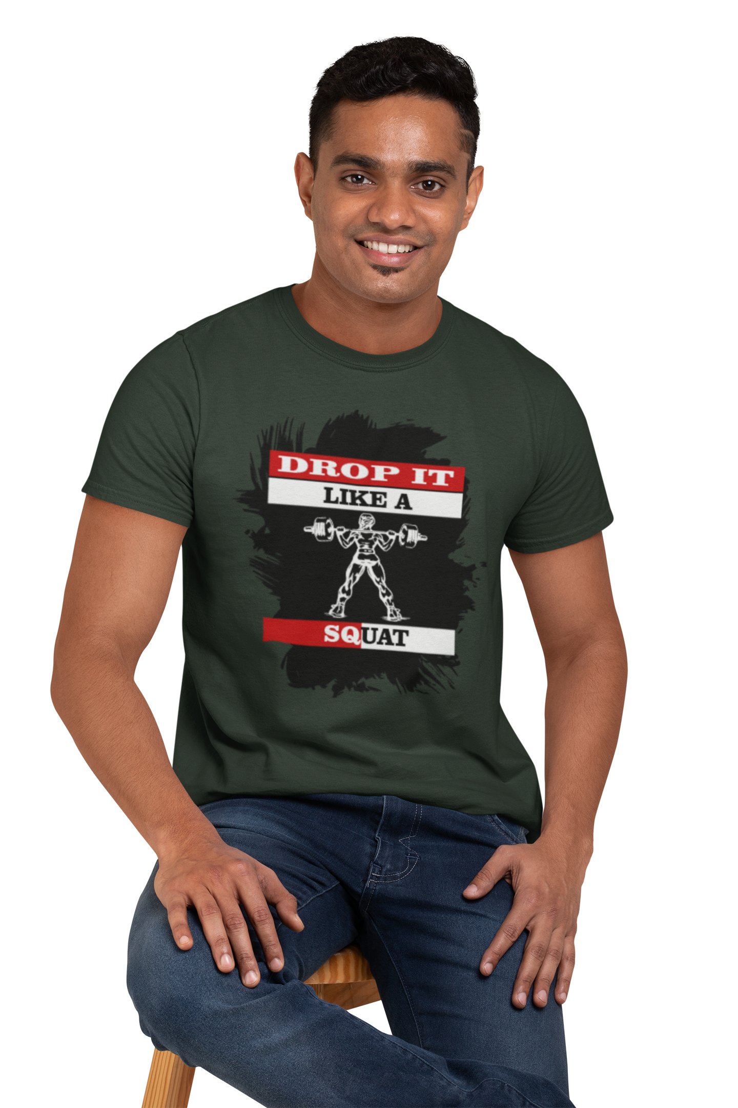 Drop It Like A Squat, Round Neck Gym Tshirt - Foremost Gifting Material for Your Friends and Close Ones