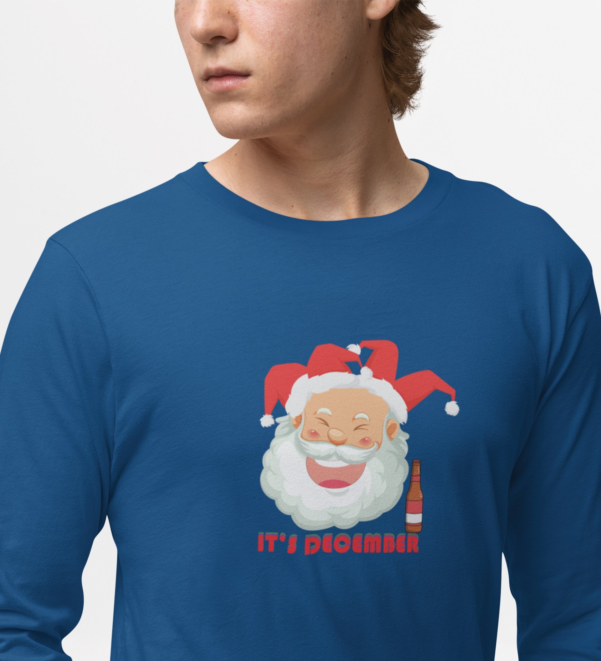 Drunkard Santa : Amazingly DesignedFull Sleeve T-shirt Blue Best Gift For Christmas Celebration