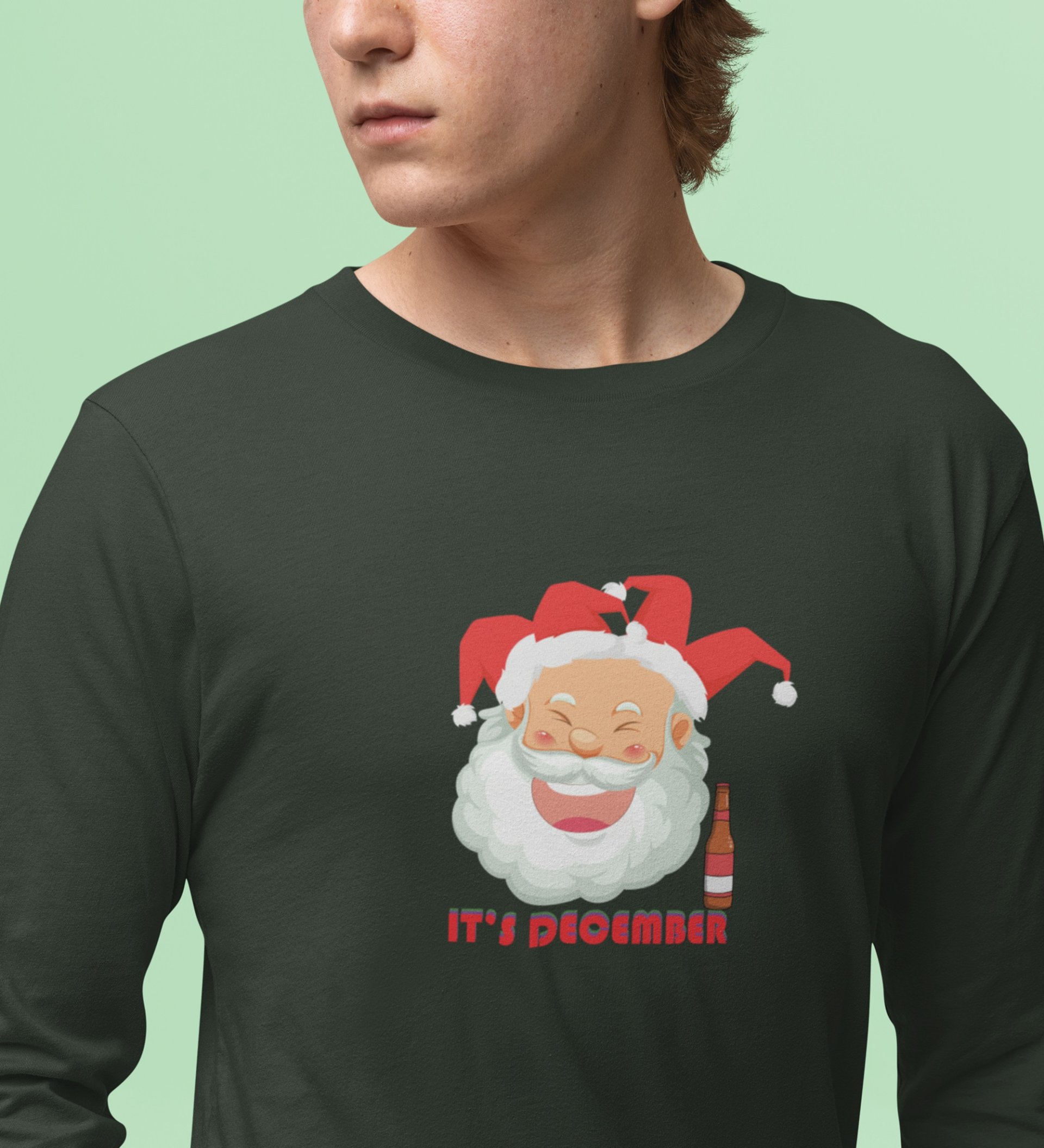 Drunkard Santa : Amazingly DesignedFull Sleeve T-shirt Green Best Gift For Christmas Celebration