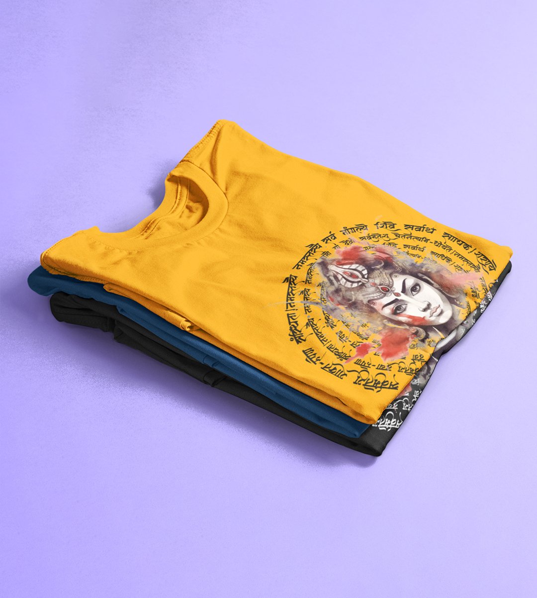 Navratri is a very auspicious festival for hindus. It takes place at the beginning of October and sometimes September. Enjoy the 9 days of festivities with full zeal and make yourself submerged in the love of Maa Durga. Navratri is also known as Durga Puja. And with this Tees, you can shine like a star during this festive season with our navratri themed cotton half sleeved Tshirts. You can pair our t-shirts with trousers and denim of your choice and make it a weekday smart casual or weekend wear. This is durable. This tshirt is smooth and soft which makes you comfortable to wear during all seasons. The printing in it is durable and odourless. It has five sizes, S,M,L,XL,XXL. The Tshirt colour is intact even after repeated washes. It can be kept in your wardrobe and hangers. Please avoid washing mashine to clean this Tee, it may affect the print. Hand wash only. We have brought you many navratri related designs printed on our different colour Tshirts to choose from. Grab it now.