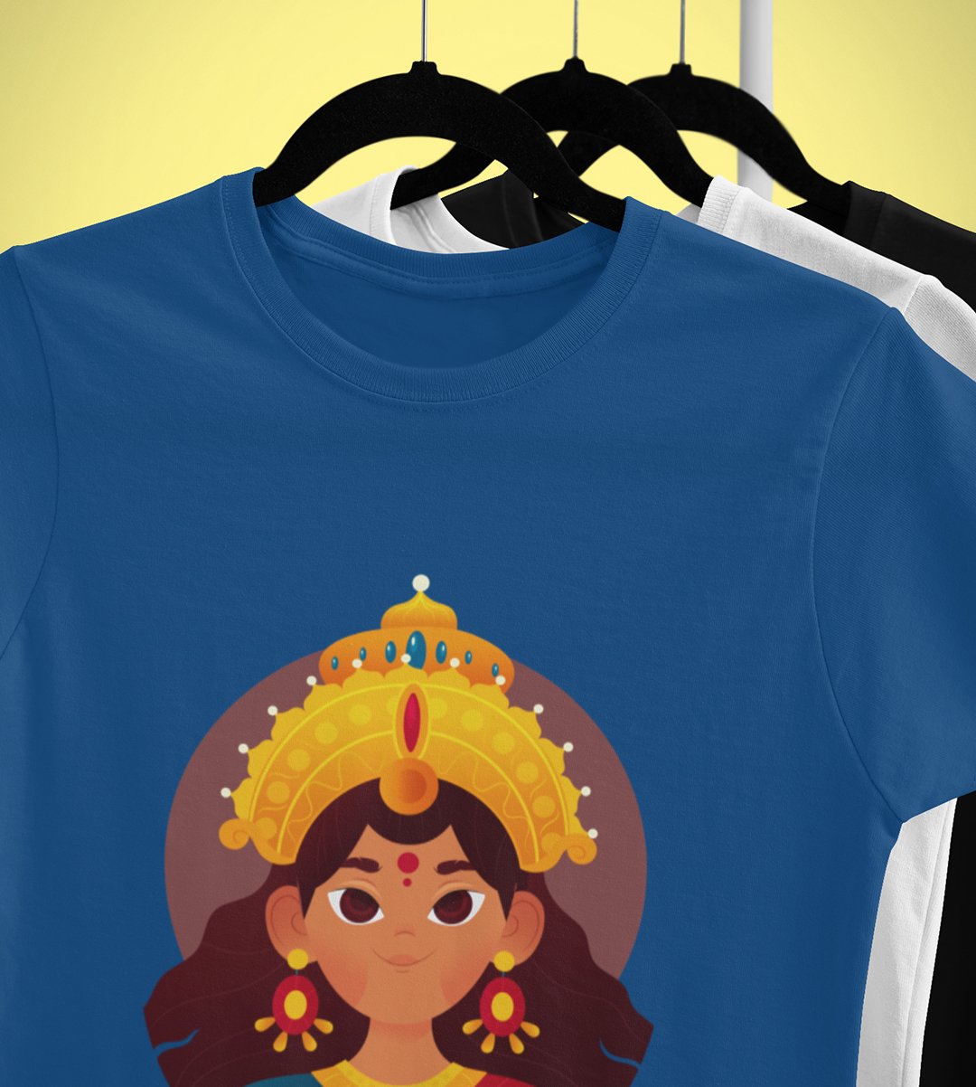 Durga maa animation printed unisex adults round neck cotton half-sleeve blue tshirt specially for Navratri festival/ Durga puja
