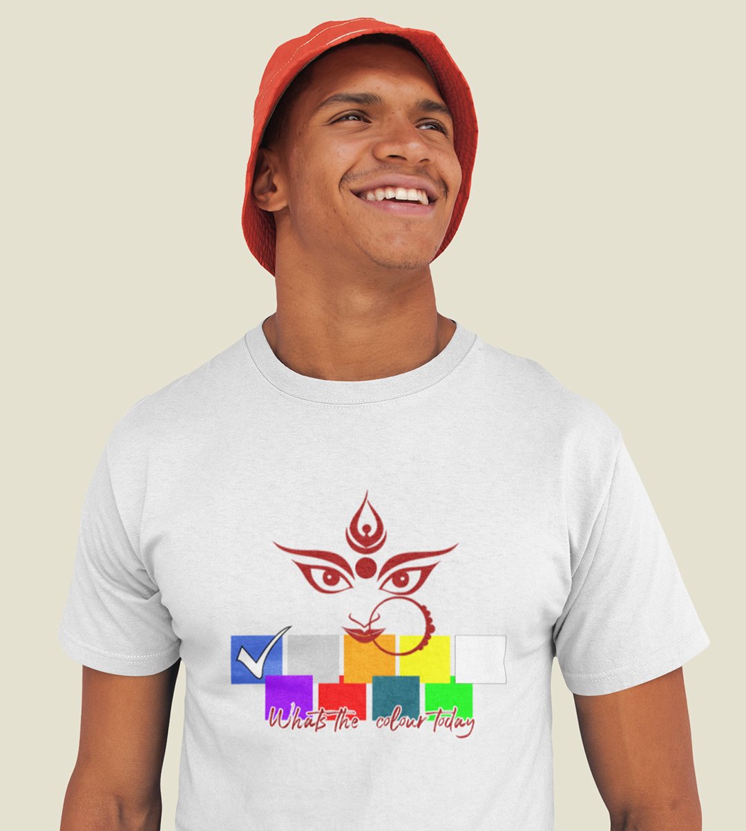 Navratri is a very auspicious festival for hindus. It takes place at the beginning of October and sometimes September. Enjoy the 9 days of festivities with full zeal and make yourself submerged in the love of Maa Durga. Navratri is also known as Durga Puja. And with this Tees, you can shine like a star during this festive season with our navratri themed cotton half sleeved Tshirts. You can pair our t-shirts with trousers and denim of your choice and make it a weekday smart casual or weekend wear. This is durable. This tshirt is smooth and soft which makes you comfortable to wear during all seasons. The printing in it is durable and odourless. It has five sizes, S,M,L,XL,XXL. The Tshirt colour is intact even after repeated washes. It can be kept in your wardrobe and hangers. Please avoid washing mashine to clean this Tee, it may affect the print. Hand wash only. We have brought you many navratri related designs printed on our different colour Tshirts to choose from. Grab it now.