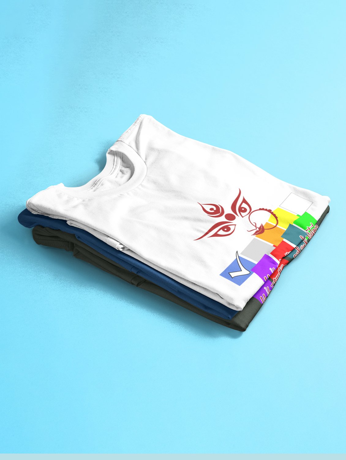 Durga maa eyes (eyes) printed unisex adults round neck cotton half-sleeve blue tshirt specially for Navratri festival/ Durga puja