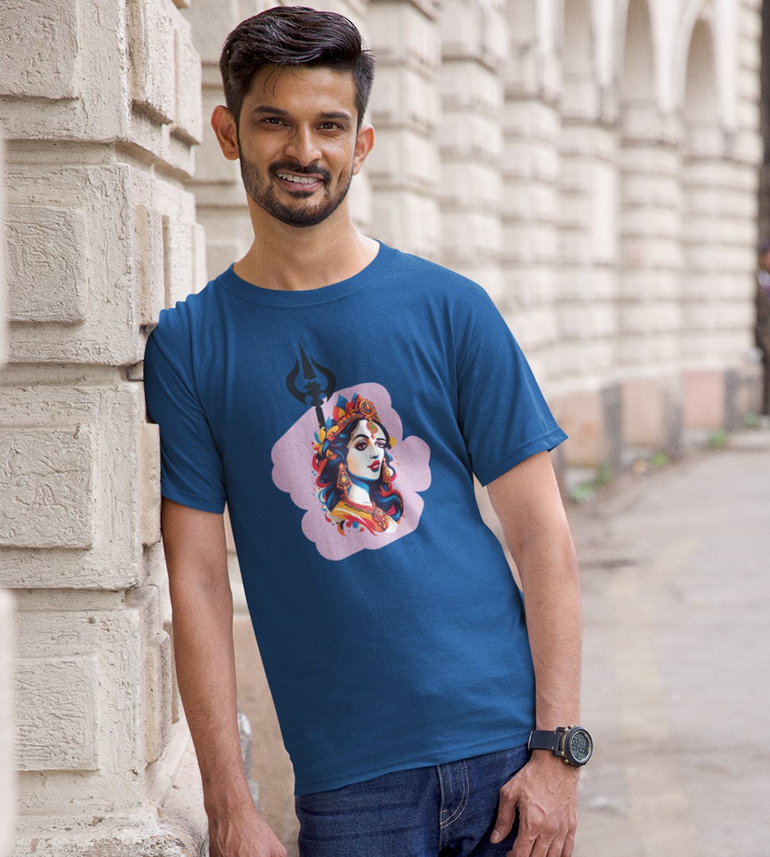 Navratri is a very auspicious festival for hindus. It takes place at the beginning of October and sometimes September. Enjoy the 9 days of festivities with full zeal and make yourself submerged in the love of Maa Durga. Navratri is also known as Durga Puja. And with this Tees, you can shine like a star during this festive season with our navratri themed cotton half sleeved Tshirts. You can pair our t-shirts with trousers and denim of your choice and make it a weekday smart casual or weekend wear. This is durable. This tshirt is smooth and soft which makes you comfortable to wear during all seasons. The printing in it is durable and odourless. It has five sizes, S,M,L,XL,XXL. The Tshirt colour is intact even after repeated washes. It can be kept in your wardrobe and hangers. Please avoid washing mashine to clean this Tee, it may affect the print. Hand wash only. We have brought you many navratri related designs printed on our different colour Tshirts to choose from. Grab it now.