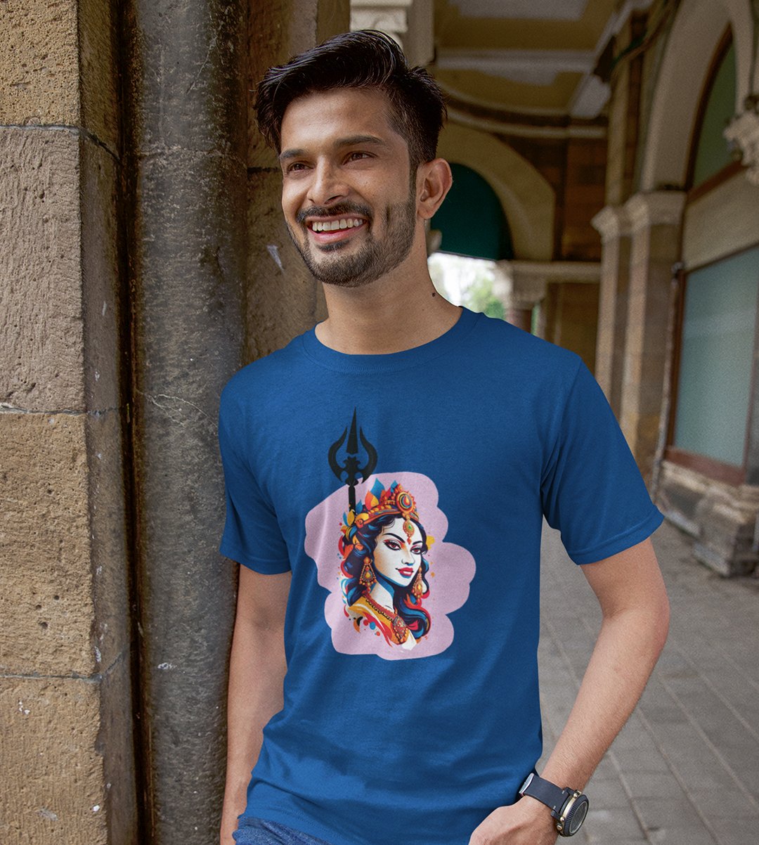 Durga maa, jewellery potrait printed unisex adults round neck cotton half-sleeve blue tshirt specially for Navratri festival/ Durga puja