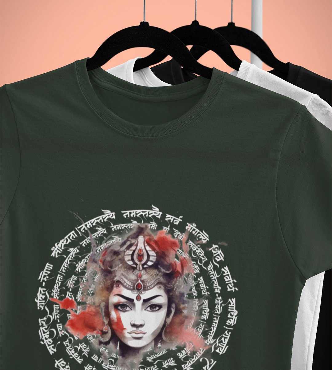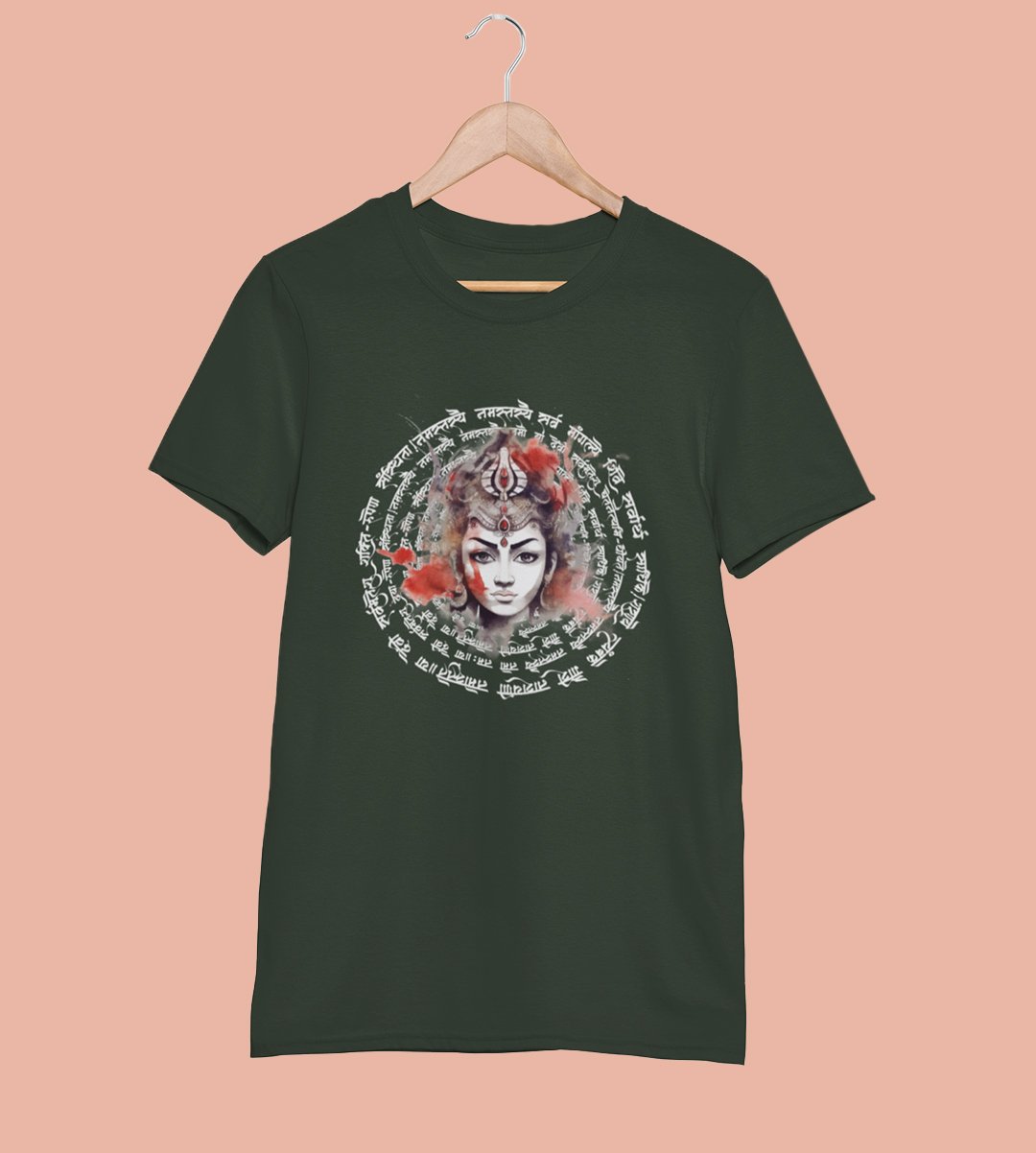 Durga maa (Mantras behind) printed unisex adults round neck cotton half-sleeve green tshirt specially for Navratri festival/ Durga puja