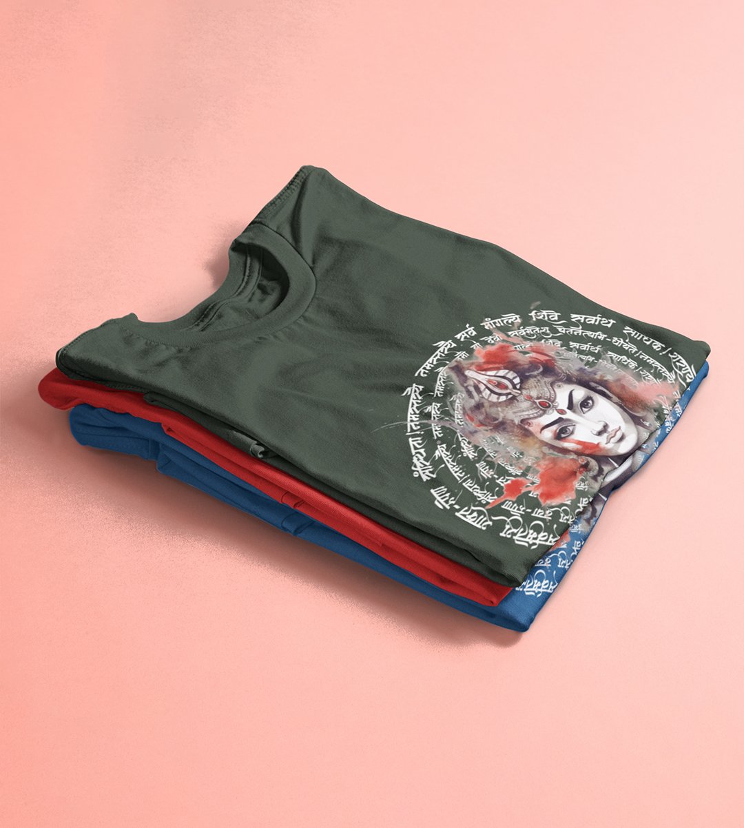Navratri is a very auspicious festival for hindus. It takes place at the beginning of October and sometimes September. Enjoy the 9 days of festivities with full zeal and make yourself submerged in the love of Maa Durga. Navratri is also known as Durga Puja. And with this Tees, you can shine like a star during this festive season with our navratri themed cotton half sleeved Tshirts. You can pair our t-shirts with trousers and denim of your choice and make it a weekday smart casual or weekend wear. This is durable. This tshirt is smooth and soft which makes you comfortable to wear during all seasons. The printing in it is durable and odourless. It has five sizes, S,M,L,XL,XXL. The Tshirt colour is intact even after repeated washes. It can be kept in your wardrobe and hangers. Please avoid washing mashine to clean this Tee, it may affect the print. Hand wash only. We have brought you many navratri related designs printed on our different colour Tshirts to choose from. Grab it now.