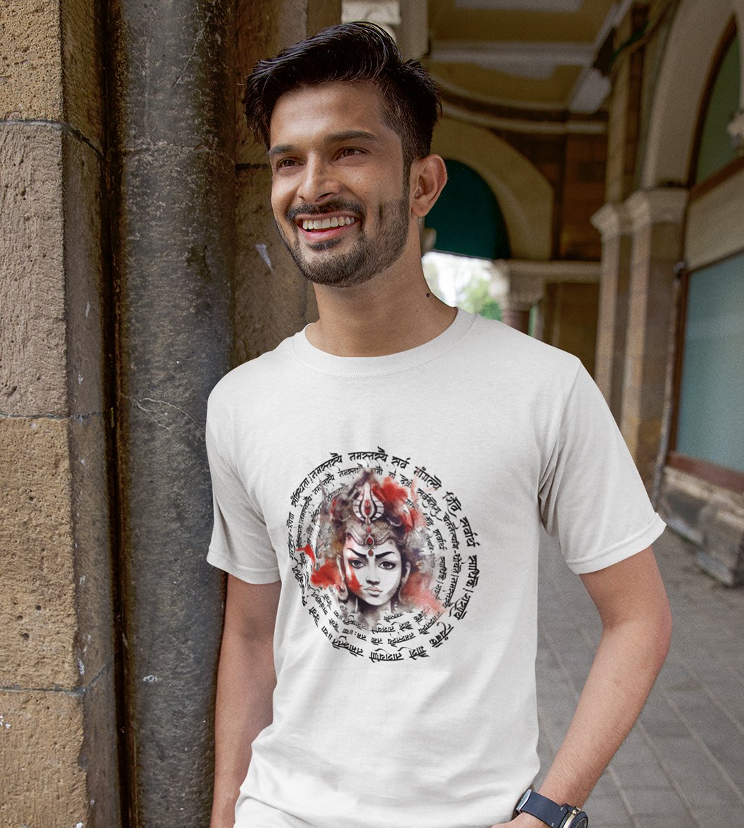 Durga maa (mantras) printed unisex adults round neck cotton half-sleeve blue tshirt specially for Navratri festival/ Durga puja