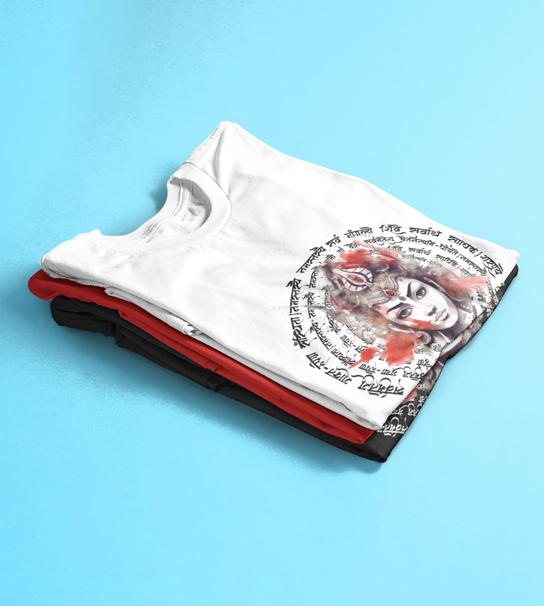 Navratri is a very auspicious festival for hindus. It takes place at the beginning of October and sometimes September. Enjoy the 9 days of festivities with full zeal and make yourself submerged in the love of Maa Durga. Navratri is also known as Durga Puja. And with this Tees, you can shine like a star during this festive season with our navratri themed cotton half sleeved Tshirts. You can pair our t-shirts with trousers and denim of your choice and make it a weekday smart casual or weekend wear. This is durable. This tshirt is smooth and soft which makes you comfortable to wear during all seasons. The printing in it is durable and odourless. It has five sizes, S,M,L,XL,XXL. The Tshirt colour is intact even after repeated washes. It can be kept in your wardrobe and hangers. Please avoid washing mashine to clean this Tee, it may affect the print. Hand wash only. We have brought you many navratri related designs printed on our different colour Tshirts to choose from. Grab it now.