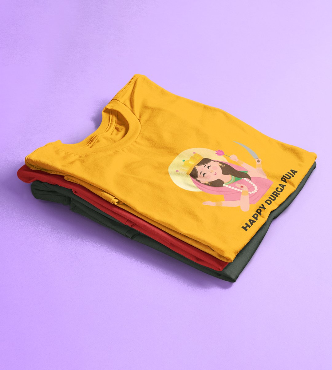 Navratri is a very auspicious festival for hindus. It takes place at the beginning of October and sometimes September. Enjoy the 9 days of festivities with full zeal and make yourself submerged in the love of Maa Durga. Navratri is also known as Durga Puja. And with this Tees, you can shine like a star during this festive season with our navratri themed cotton half sleeved Tshirts. You can pair our t-shirts with trousers and denim of your choice and make it a weekday smart casual or weekend wear. This is durable. This tshirt is smooth and soft which makes you comfortable to wear during all seasons. The printing in it is durable and odourless. It has five sizes, S,M,L,XL,XXL. The Tshirt colour is intact even after repeated washes. It can be kept in your wardrobe and hangers. Please avoid washing mashine to clean this Tee, it may affect the print. Hand wash only. We have brought you many navratri related designs printed on our different colour Tshirts to choose from. Grab it now.
