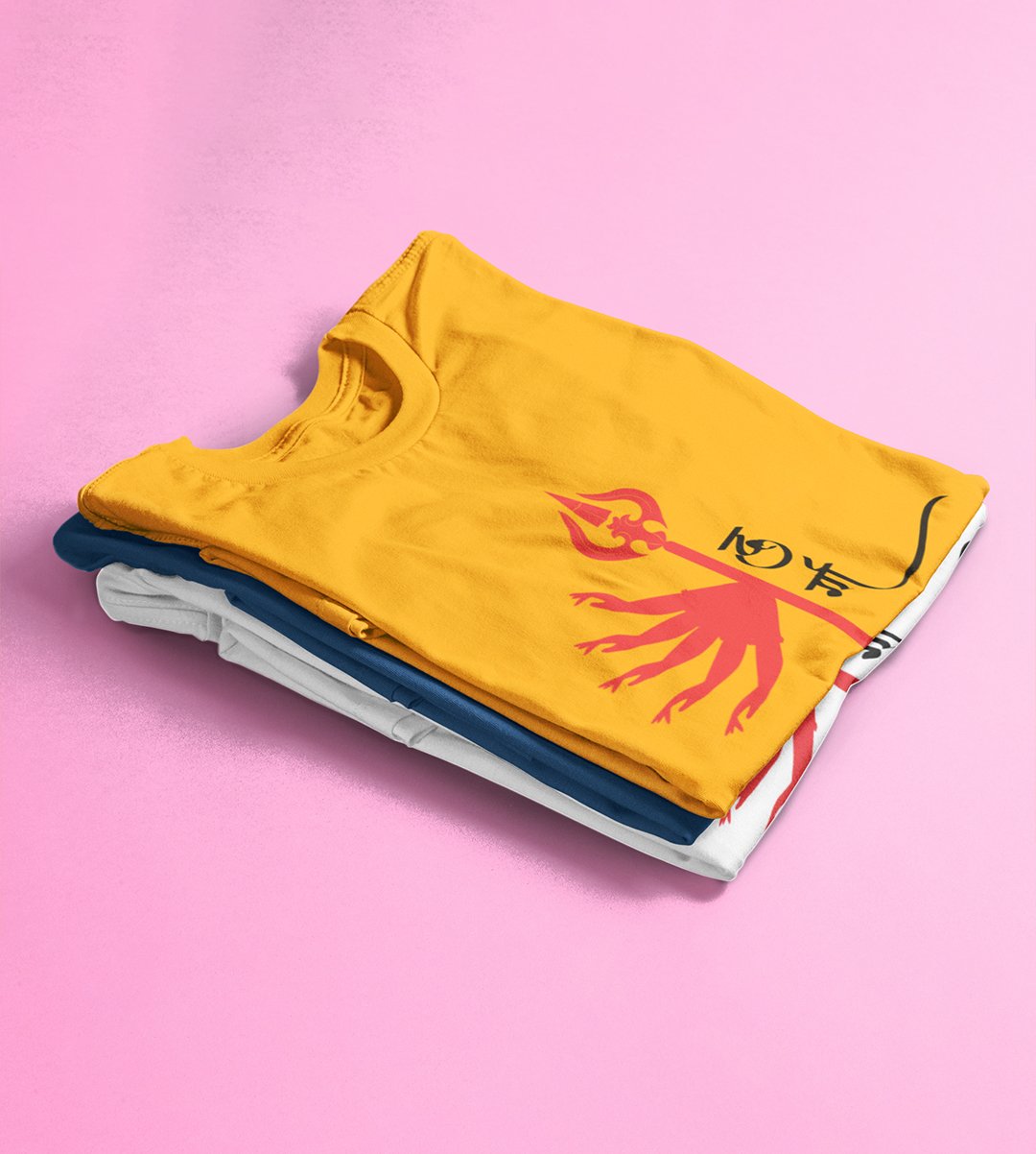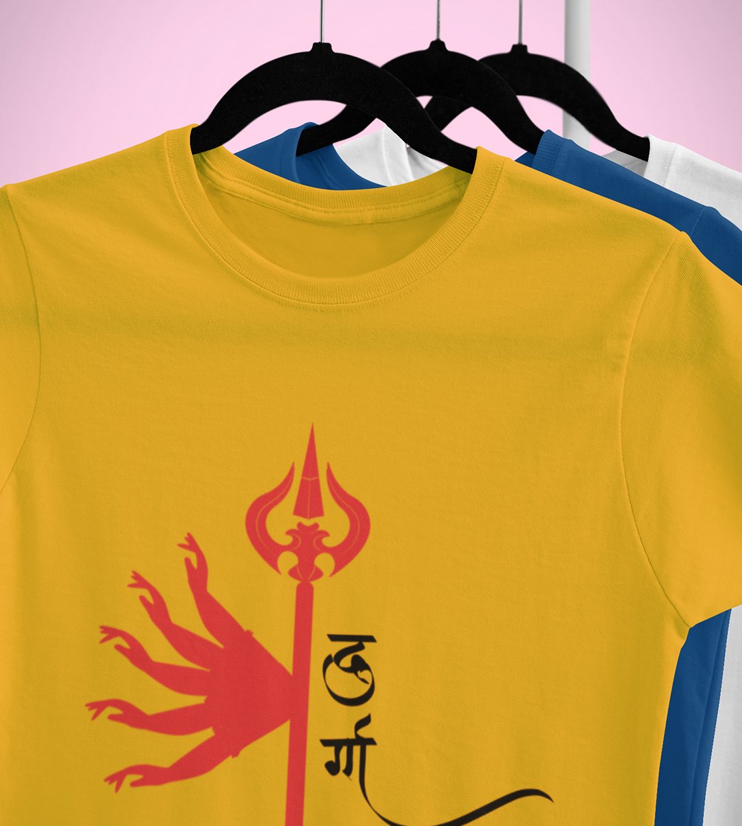 Durga (trishul) printed unisex adults round neck cotton half-sleeve yellow tshirt specially for Navratri festival/ Durga puja