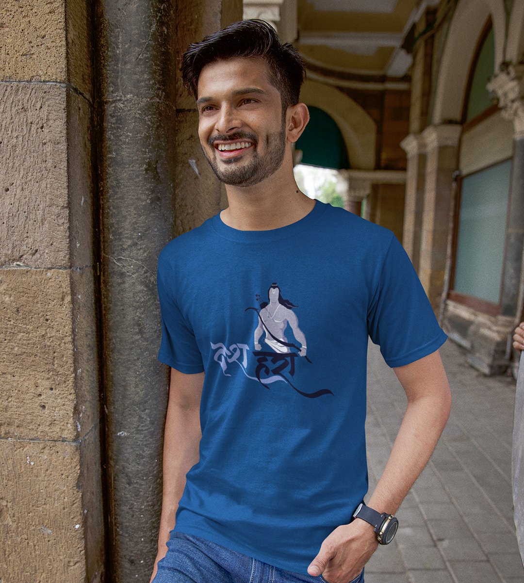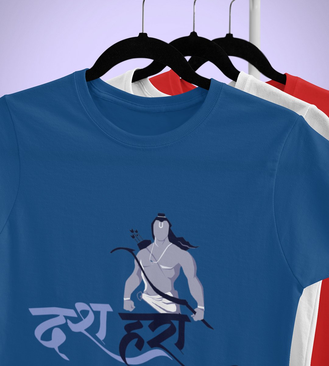 Dussehra (Lord Ram animation) printed unisex adults round neck cotton half-sleeve blue tshirt specially for Navratri festival/ Durga puja