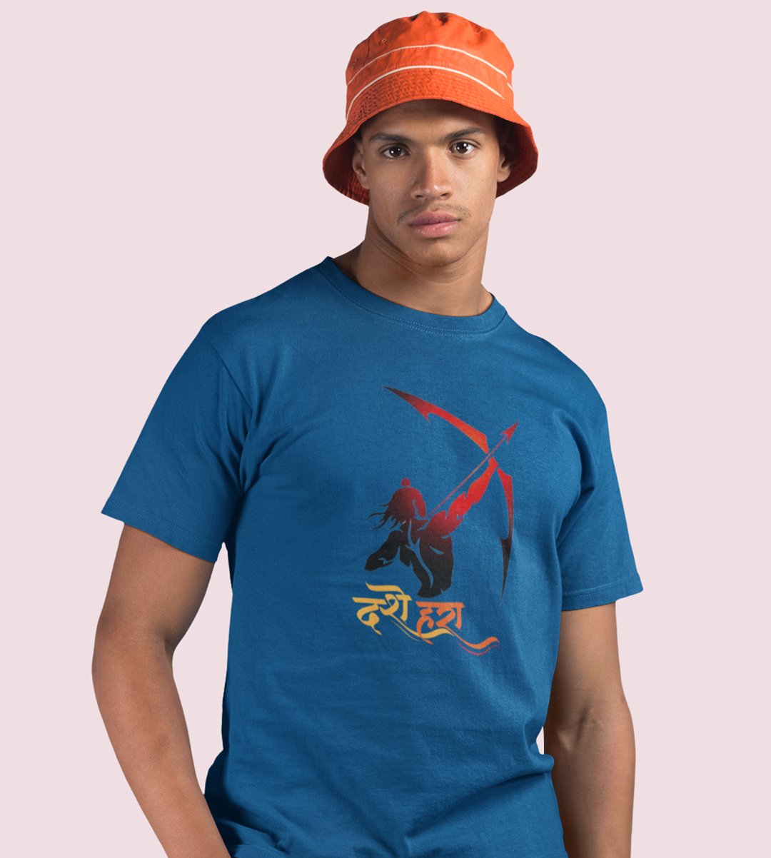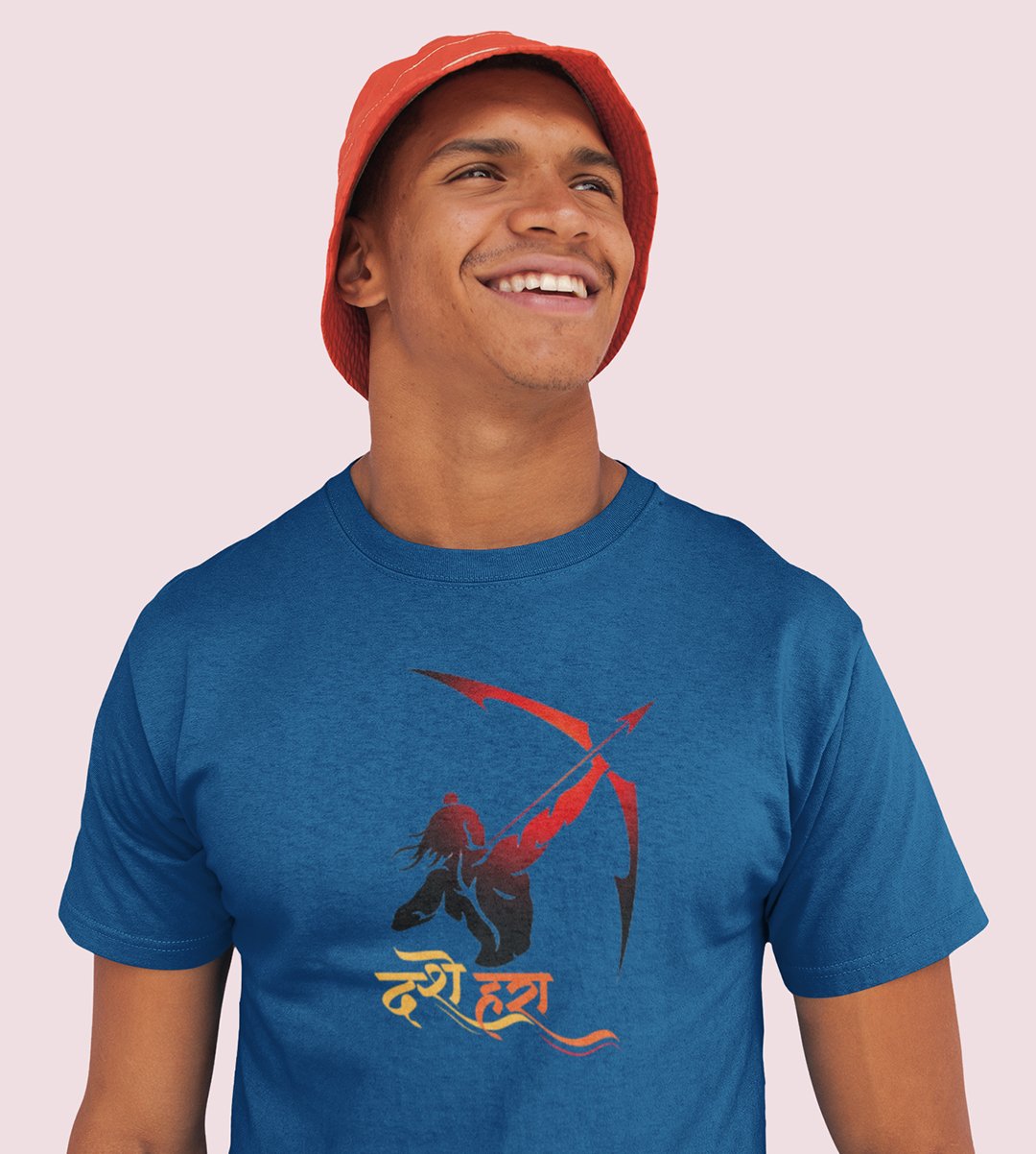 Dussehra printed unisex adults round neck cotton half-sleeve blue tshirt specially for Navratri festival/ Durga puja