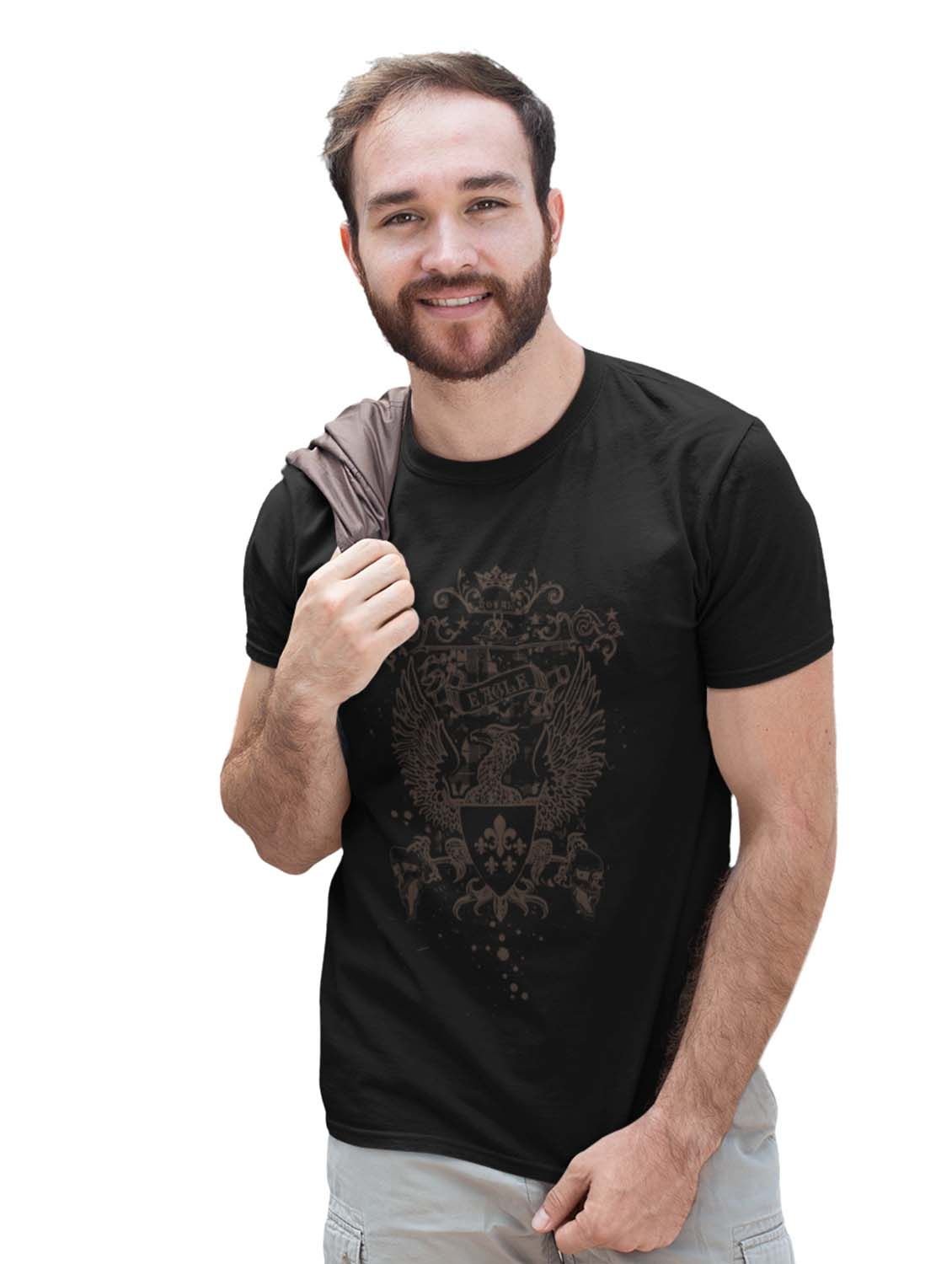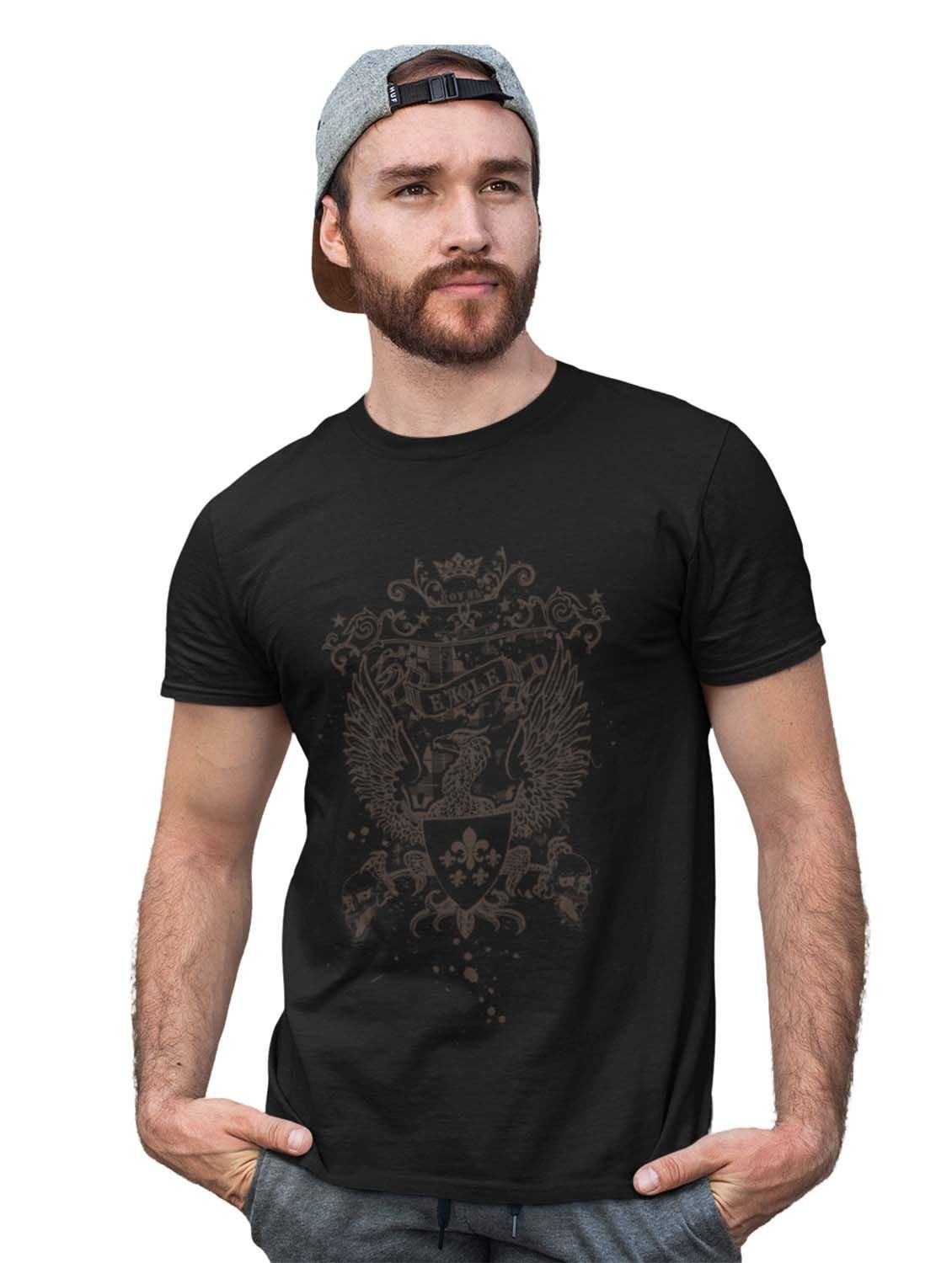 The Royal Eagle Black Round Neck Cotton Half Sleeved T-Shirt with Printed Graphics