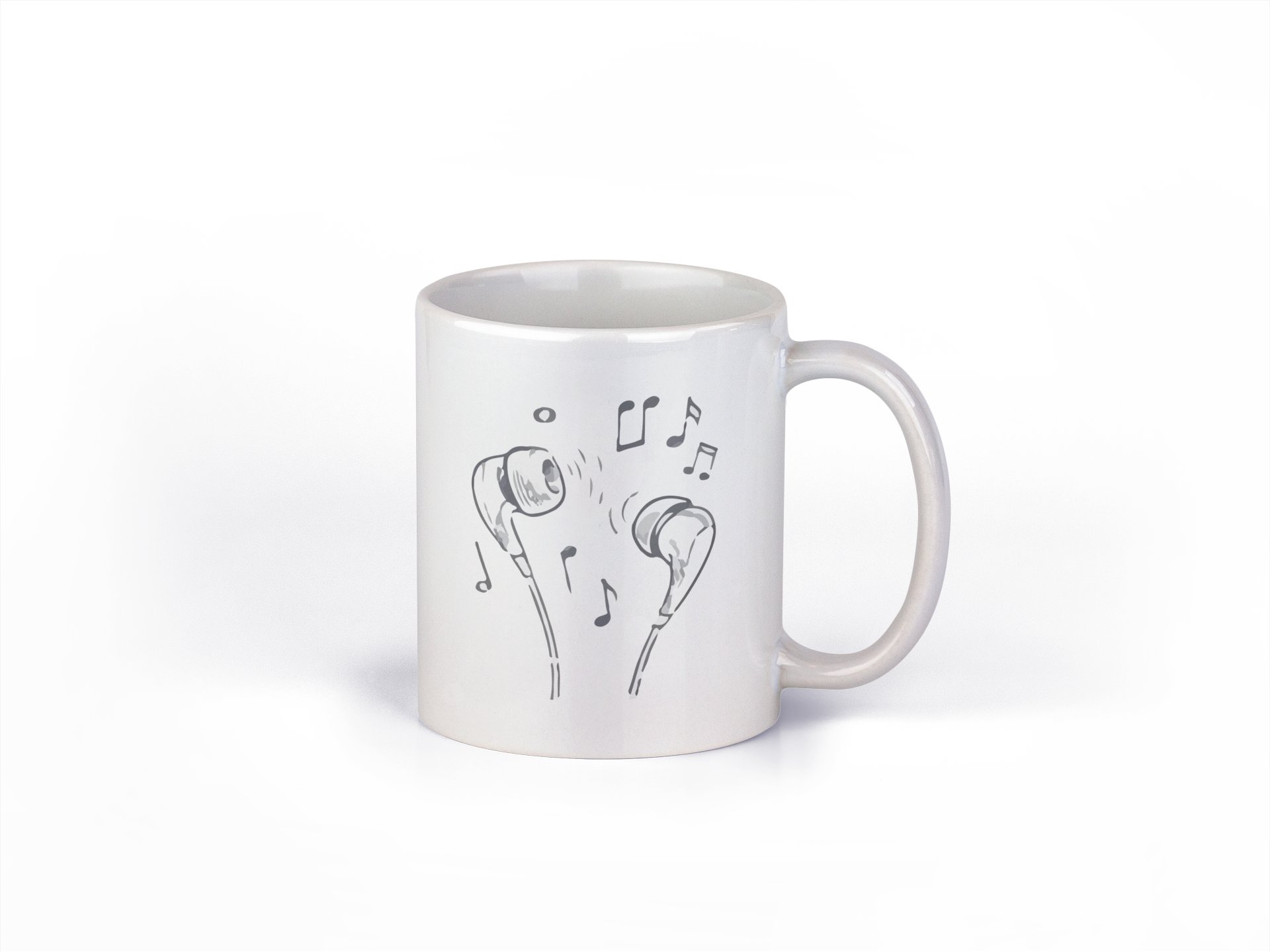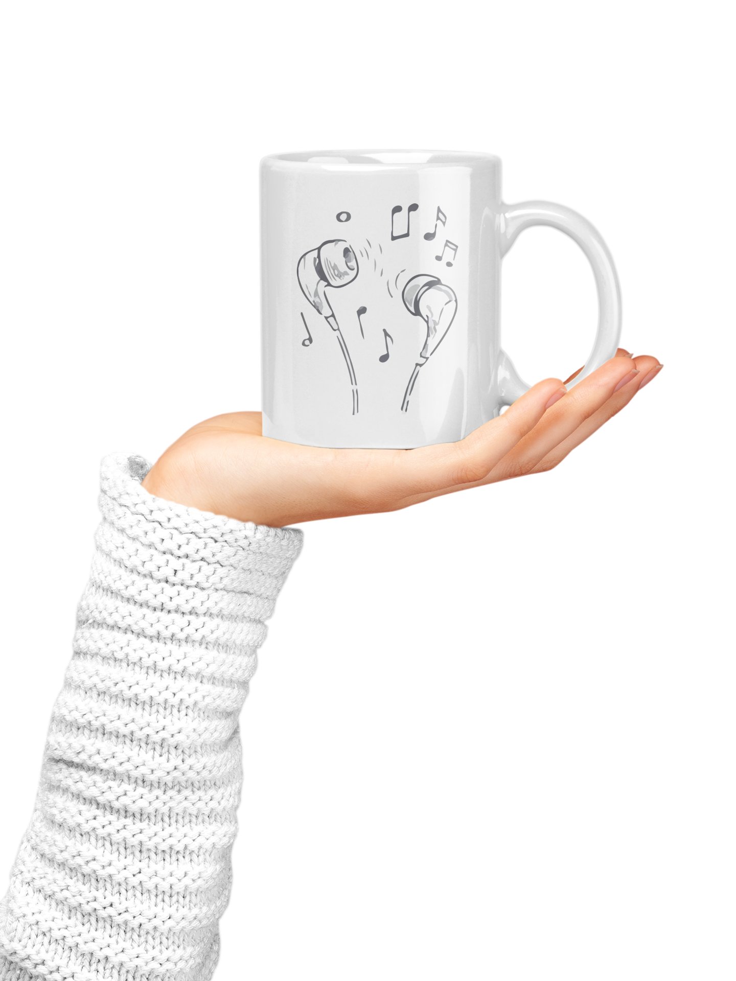 Earphones with Music Notes - music themed printed ceramic white coffee and tea mugs/ cups for music lovers