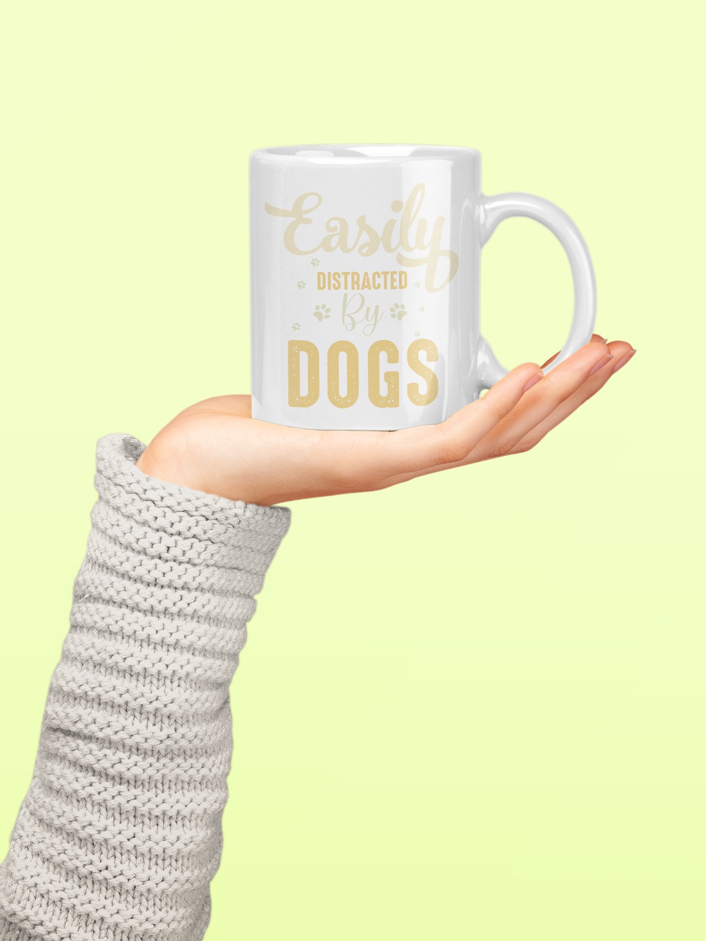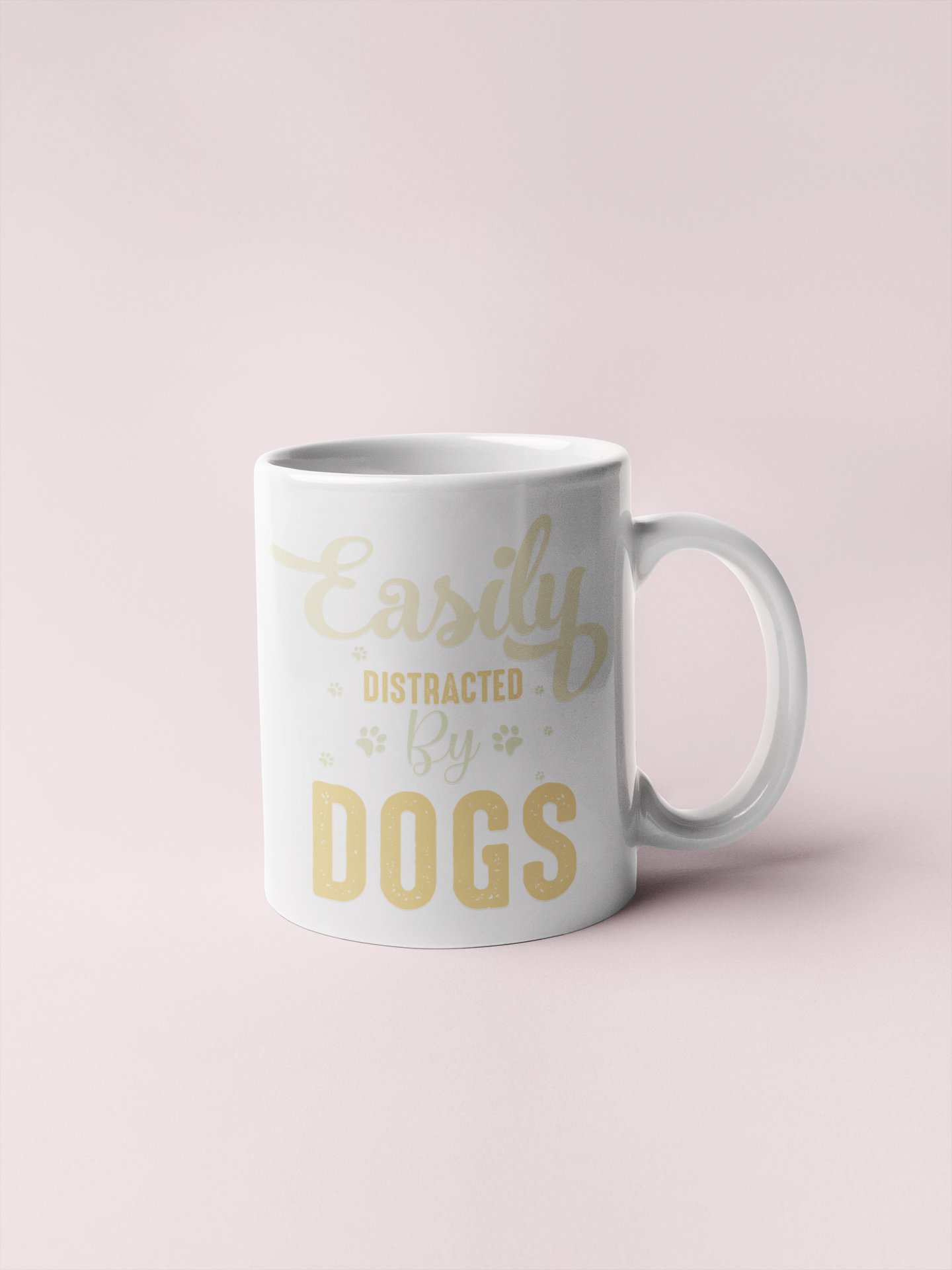 Easily distracted by dogs - pets themed printed ceramic white coffee and tea mugs/ cups for pets lover people