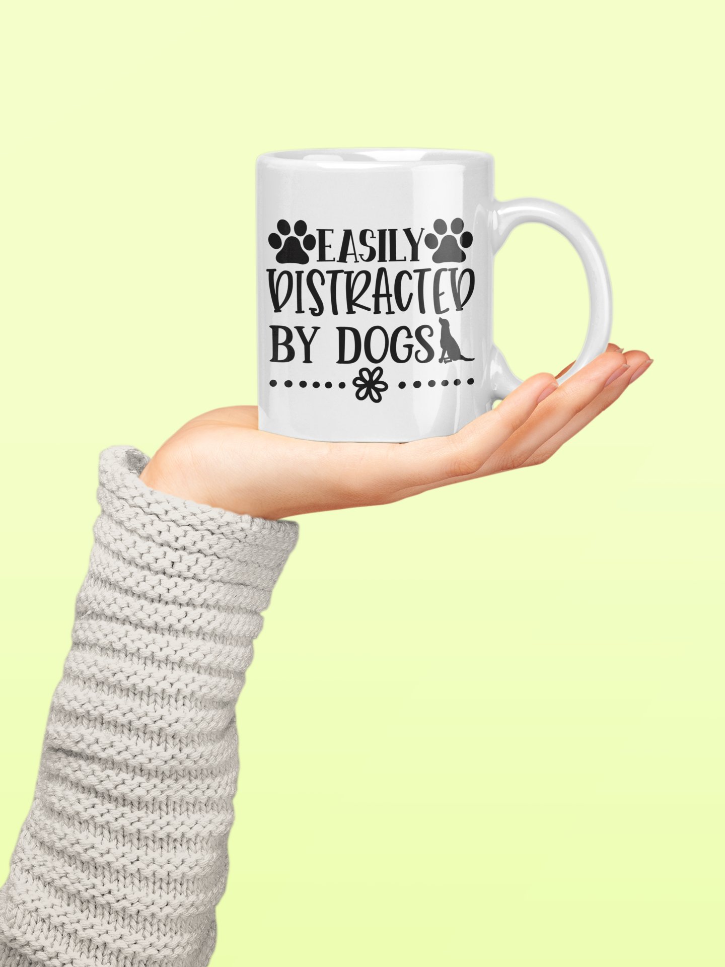 Easily distracted by dogs - pets themed printed ceramic white coffee and tea mugs/ cups for pets lover people