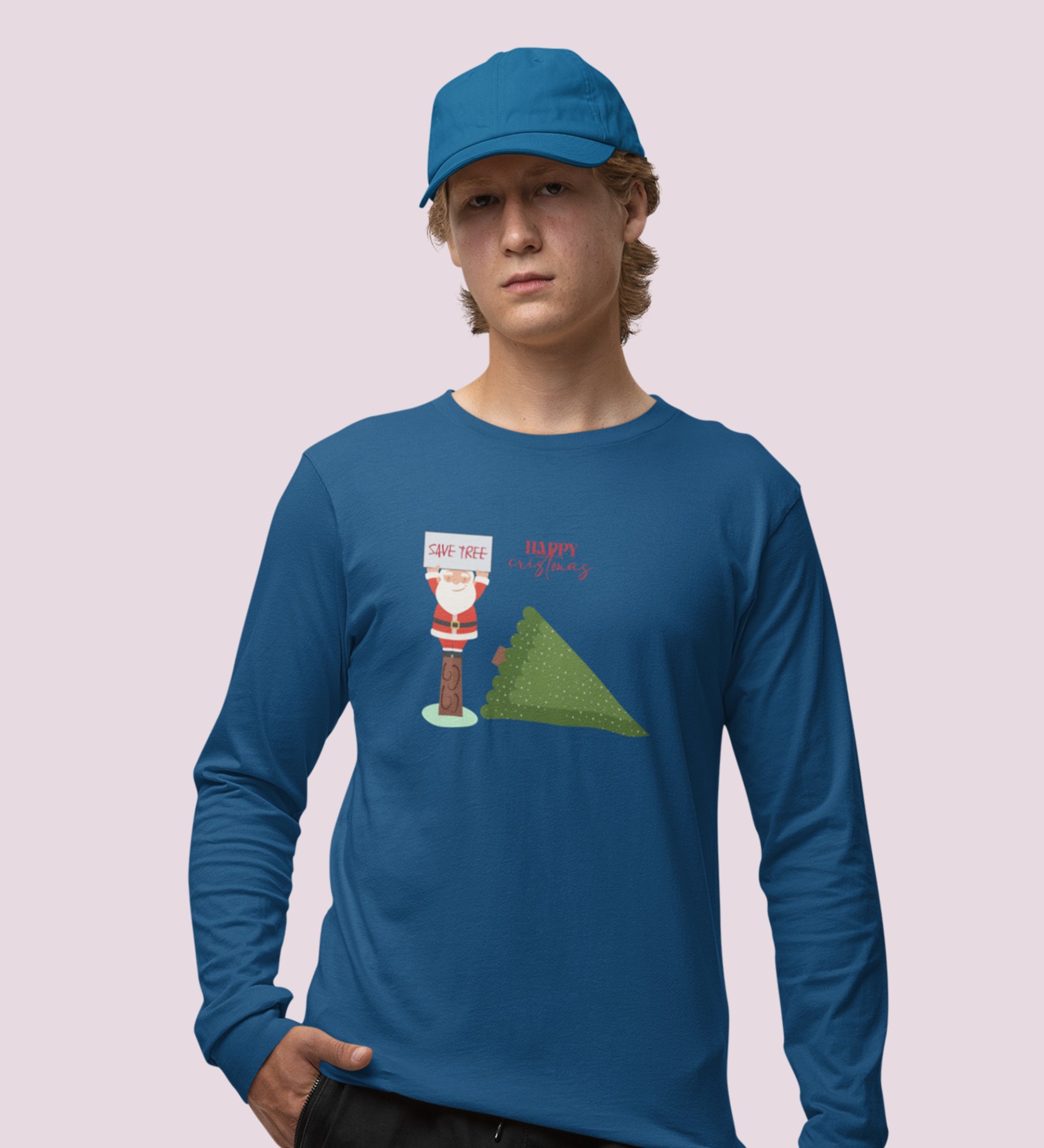 Eco-Friendly Santa: Beautifully DesignedFull Sleeve T-shirt Blue Exclusive Gift For Boys Girls