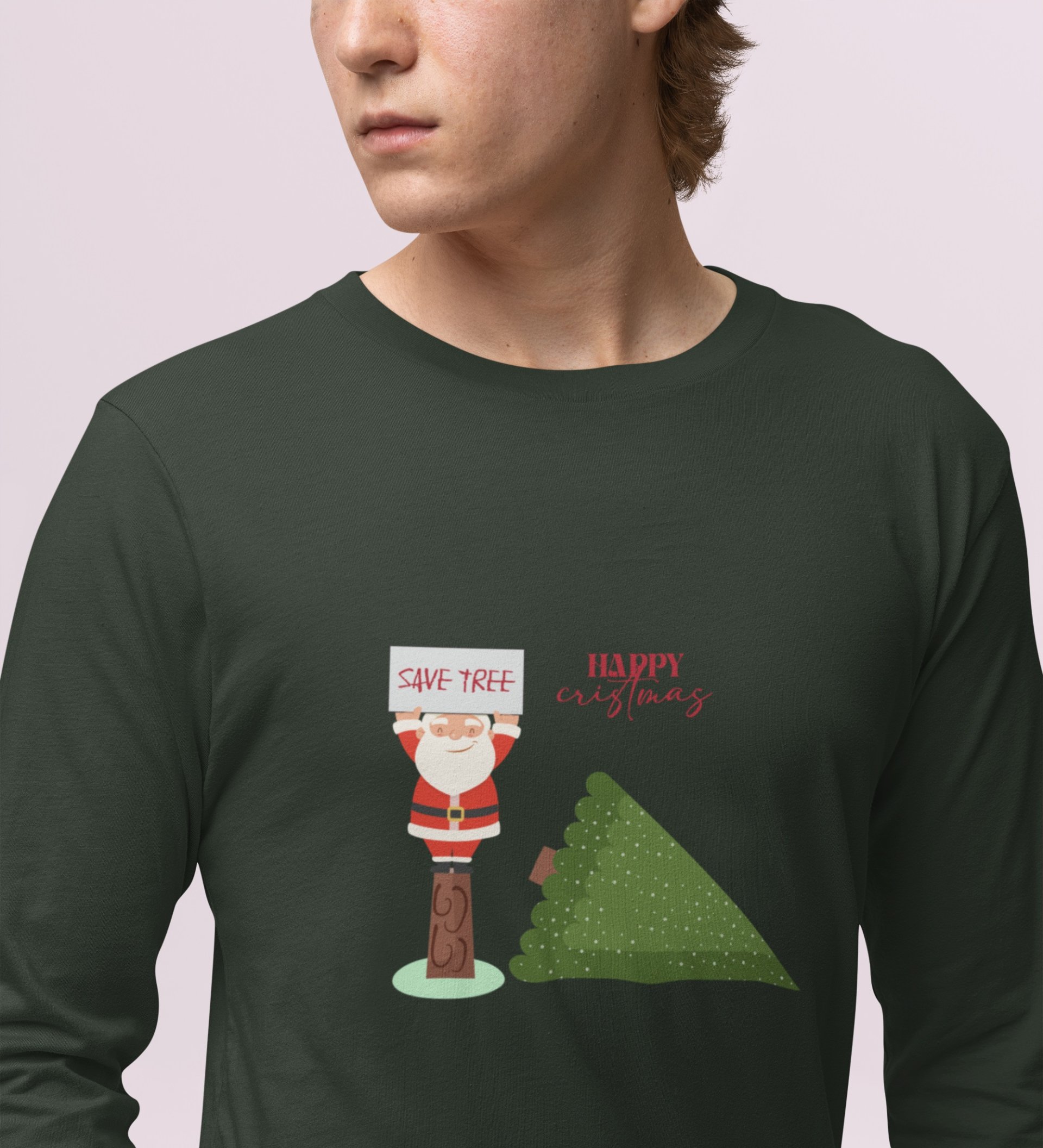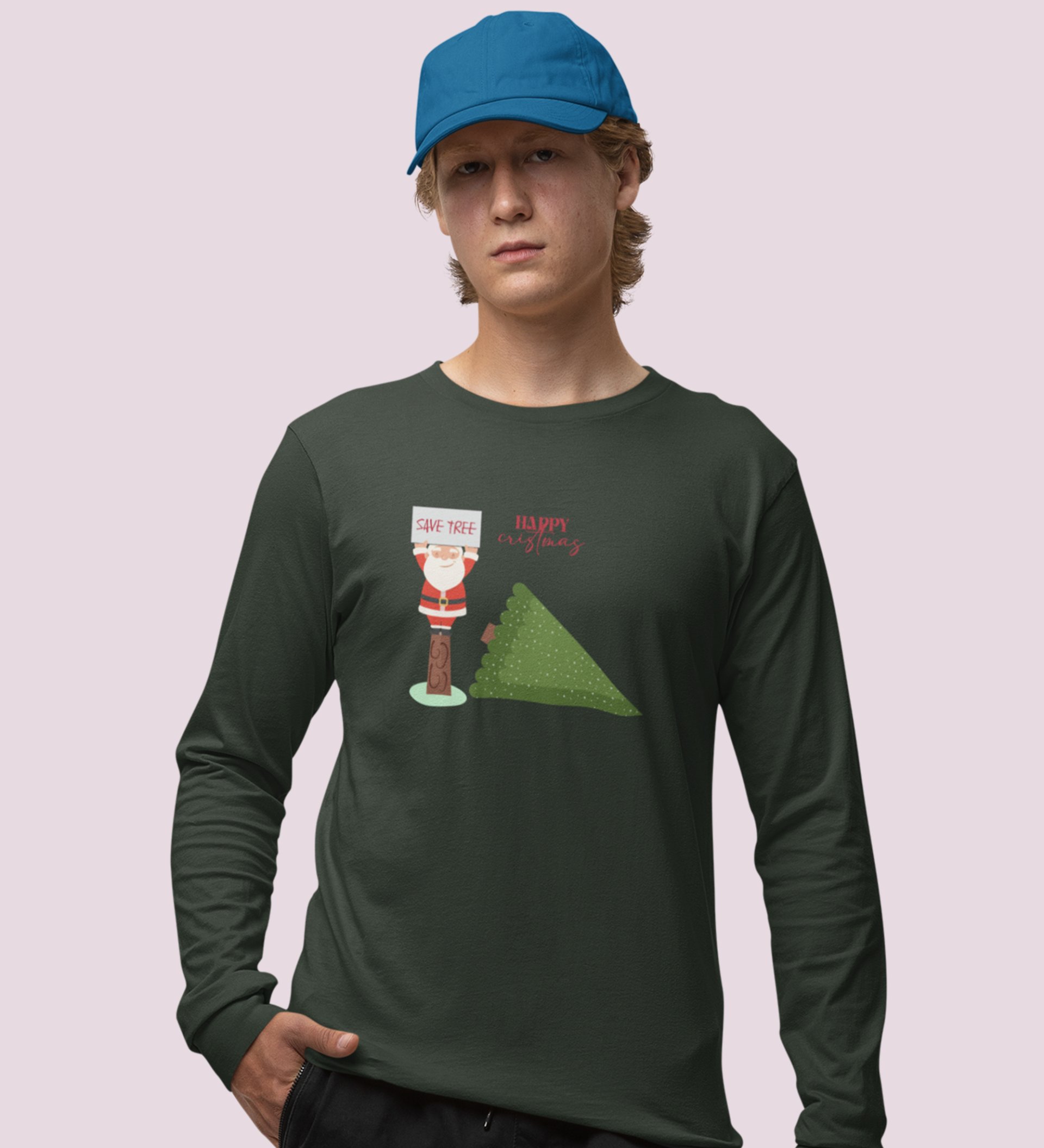 Eco-Friendly Santa: Beautifully DesignedFull Sleeve T-shirt Green Exclusive Gift For Boys Girls