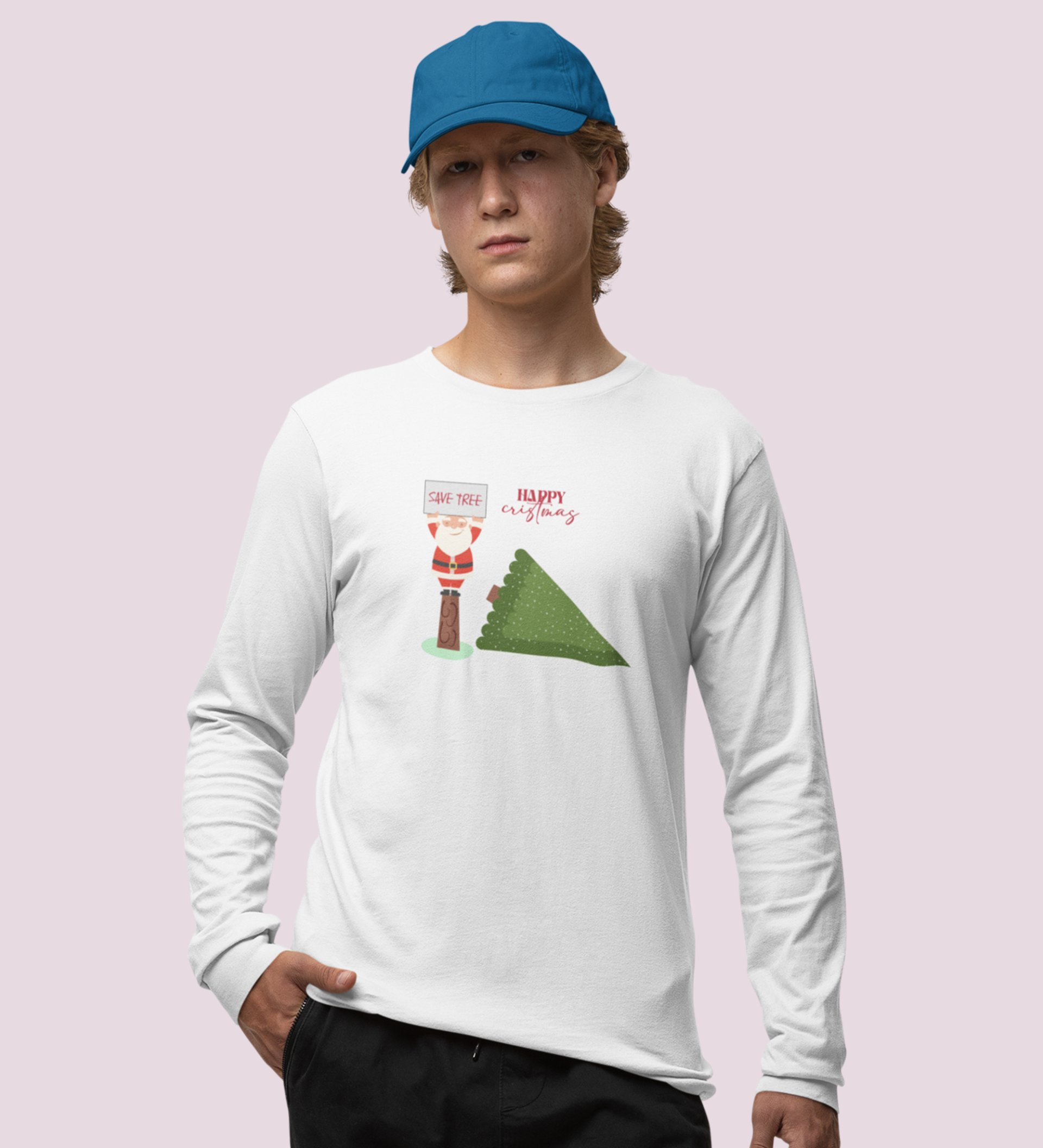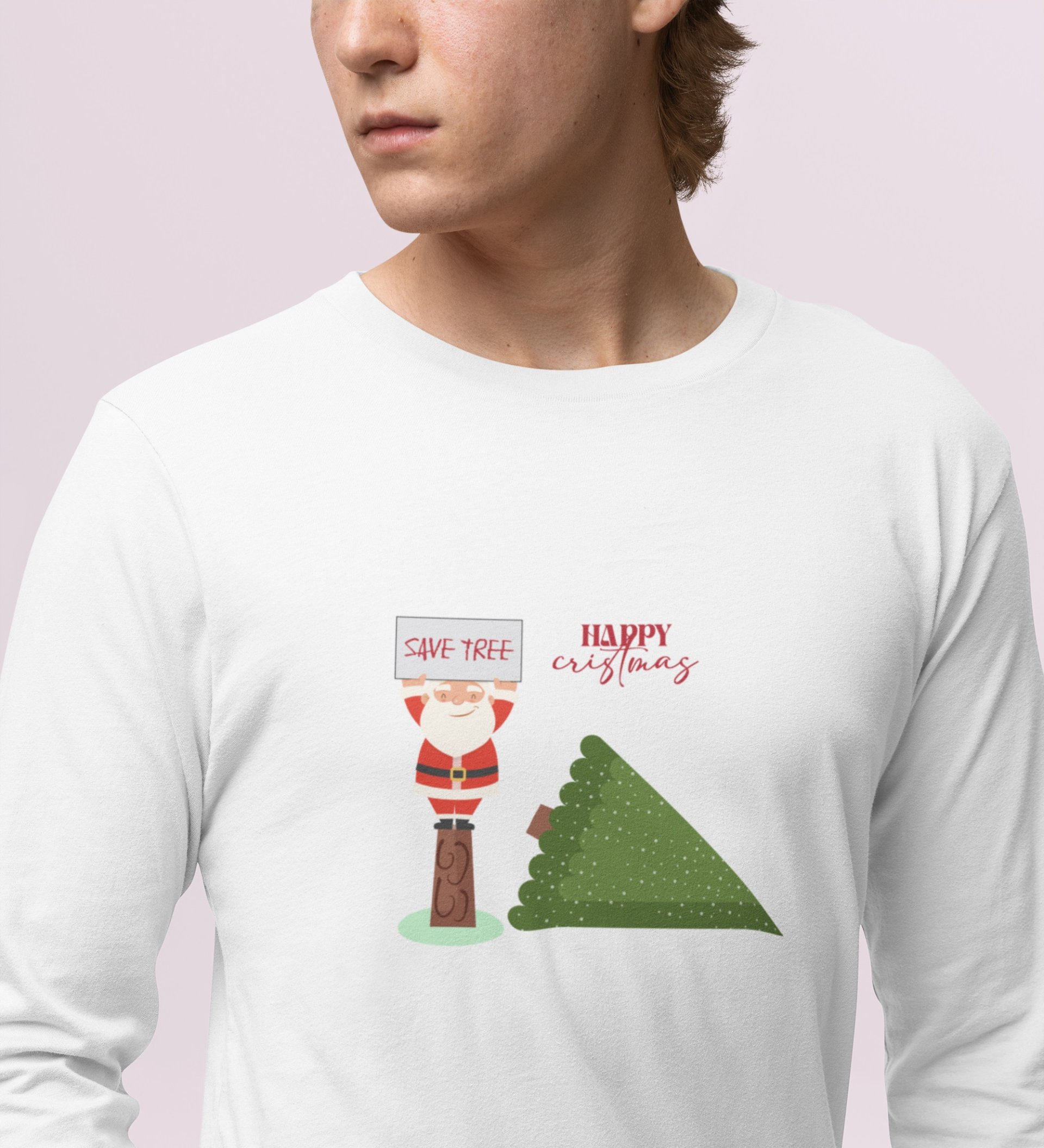Eco-Friendly Santa: Beautifully DesignedFull Sleeve T-shirt White Exclusive Gift For Boys Girls