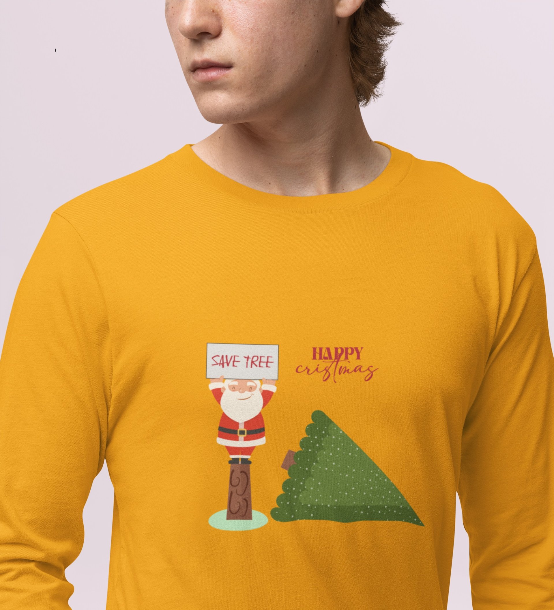 Eco-Friendly Santa: Beautifully DesignedFull Sleeve T-shirt Yellow Exclusive Gift For Boys Girls