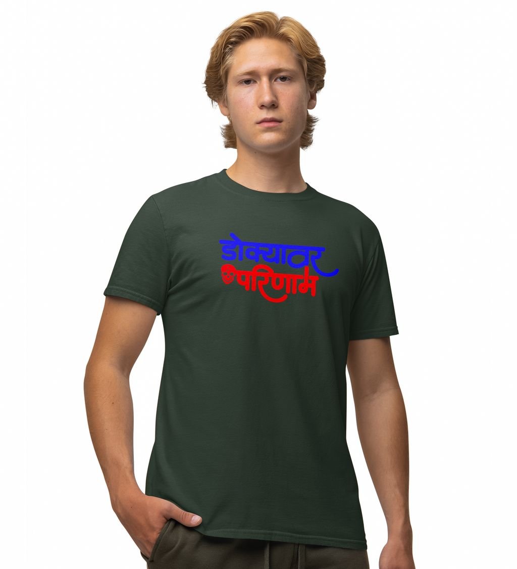 Effect On Mind Green Round Neck Cotton Half Sleeved Men T Shirt with Printed Graphics