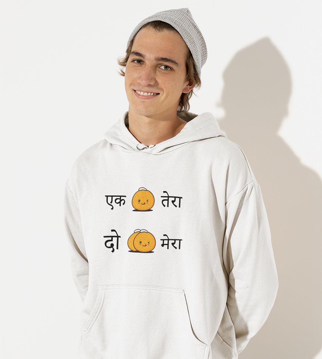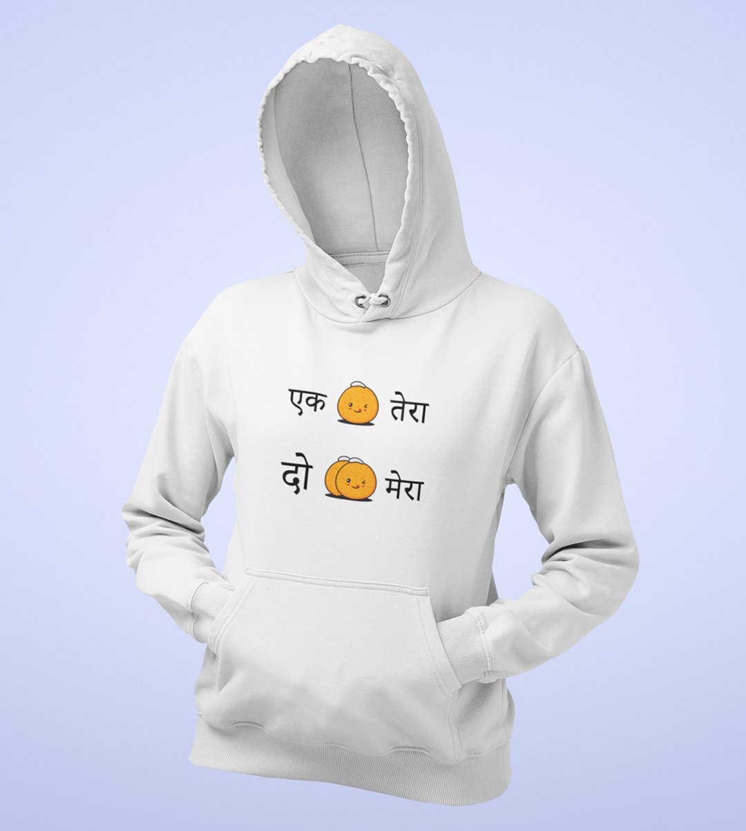 Indulge in the sweet delight of Diwali with our "Diwali Sweets Fun" White Hoodie . The playful message "Ek Tera, 2 Mera" adds a lighthearted touch to your Ladoo celebration, bringing out the true essence of the Diwali theme. Sip your and relish the joys of sharing and savoring sweets during the festival.