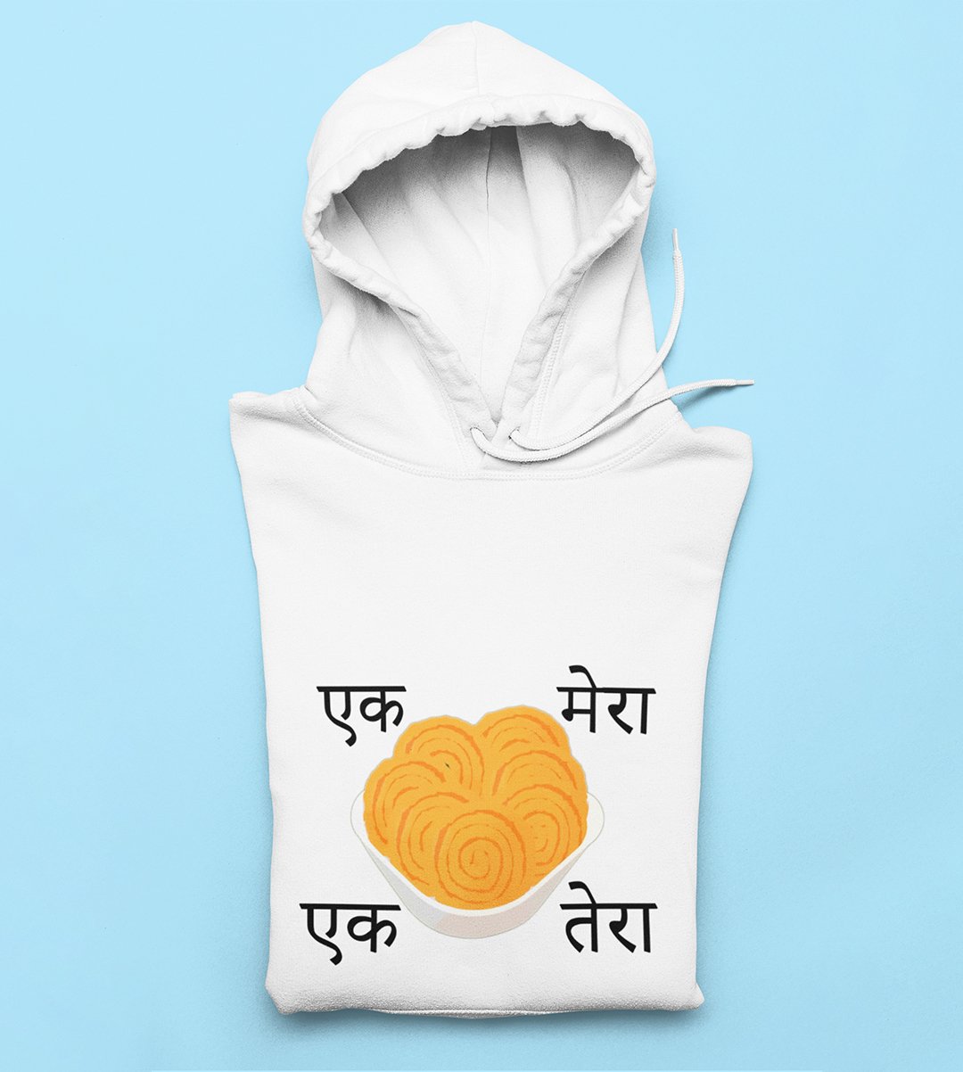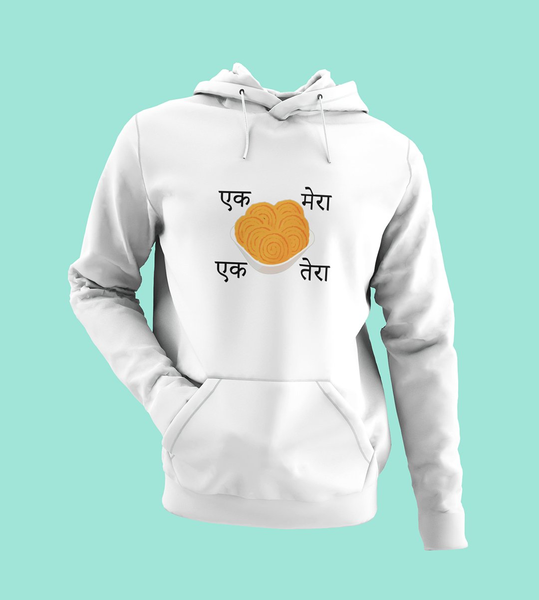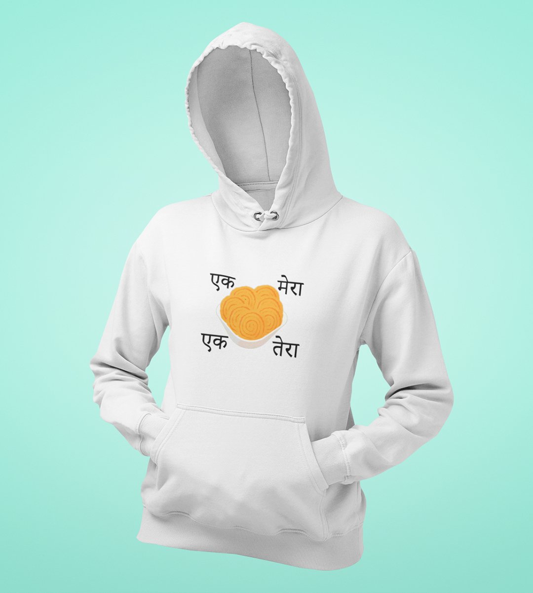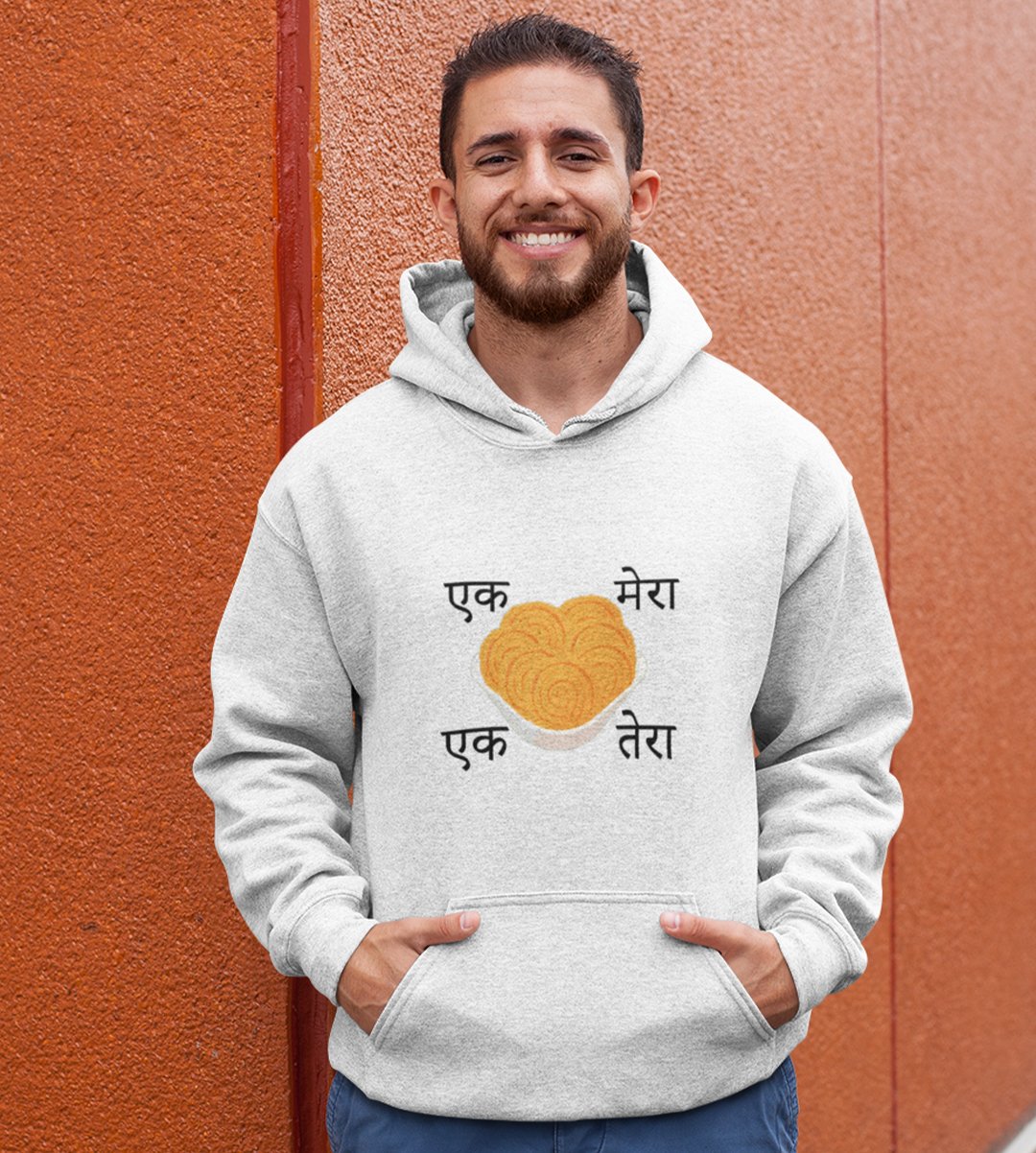 Embrace the delightful world of Diwali snacks with our "Diwali Snack Delight" White Hoodie . The playful message "Ek Chakli Mera, Ek Chakli Tera" adds a lighthearted touch to your Chakli celebration, capturing the essence of festive snacking. Sip your and enjoy the flavors of Diwali with this joyful White Hoodie .